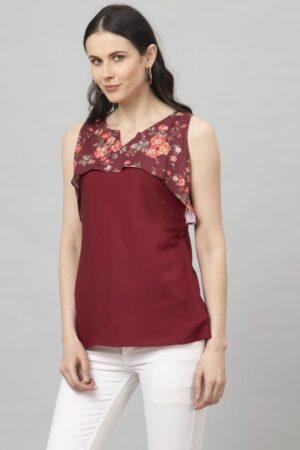 Adorable Maroon Coloured Digital Printed Crepe Tops