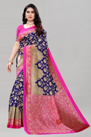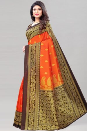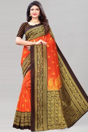 Beige And Maroon Coloured Poly Silk Printed Saree