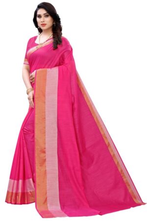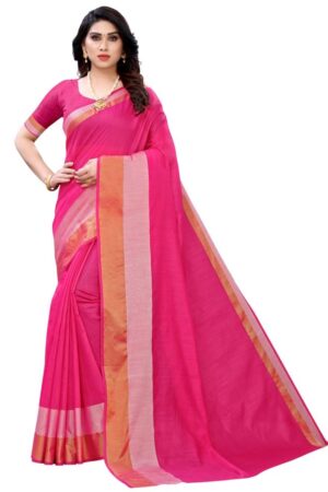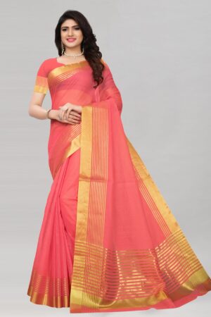 Pink Coloured Poly Cotton Self Woven Casual saree
