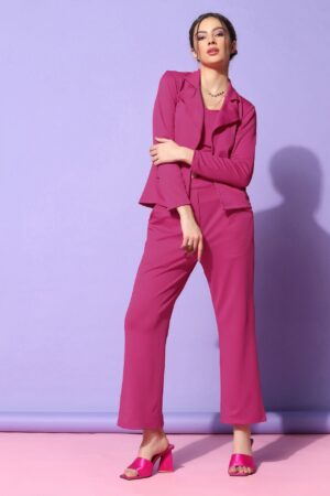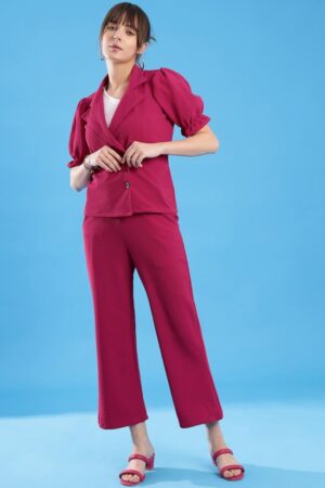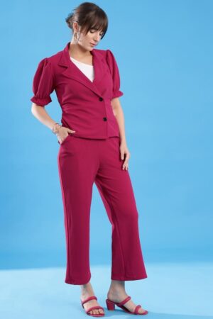 Fuchsia Pink Puff Sleeve Solid Co-Ords Set