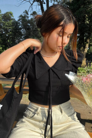 Black Cuffed Sleeves Top