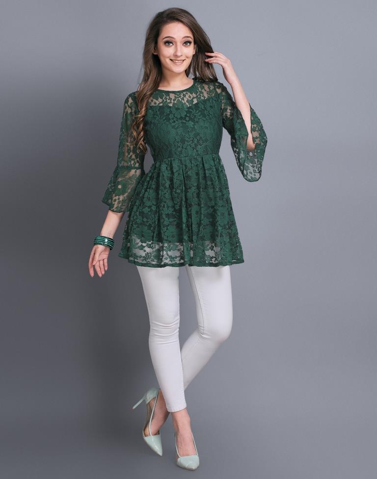 Alluring Green Coloured Net Russell Net Tops