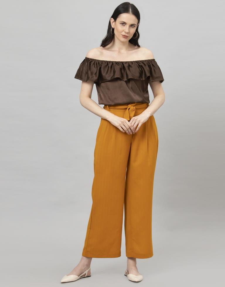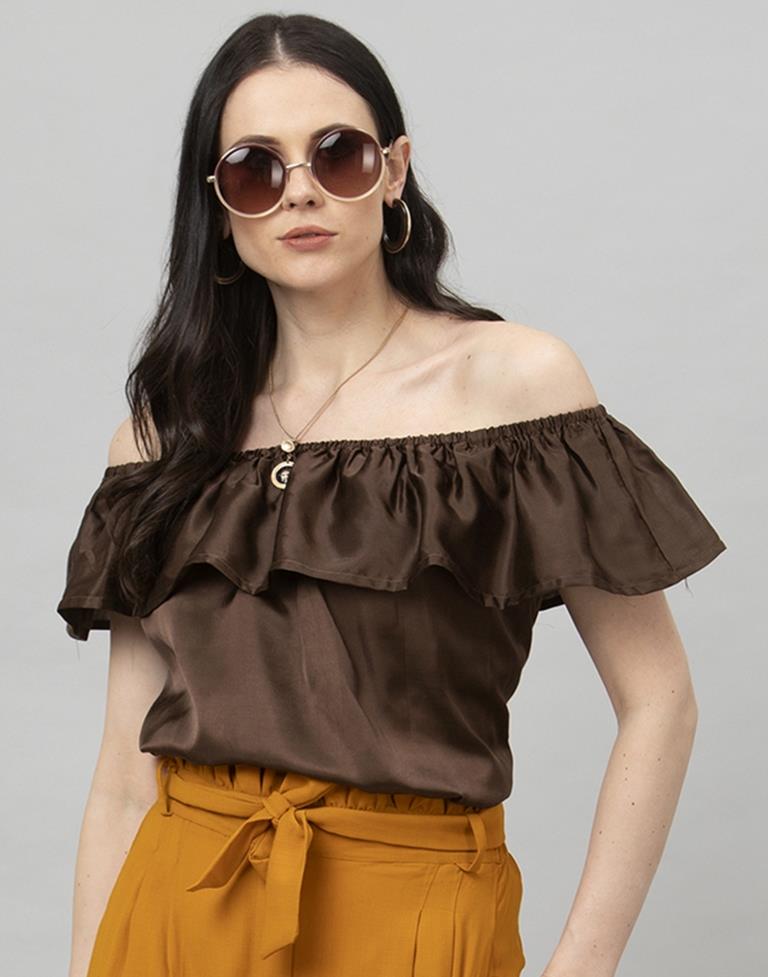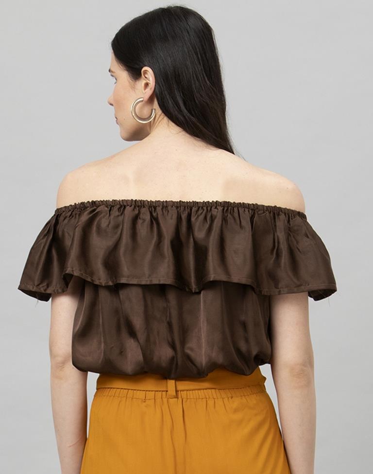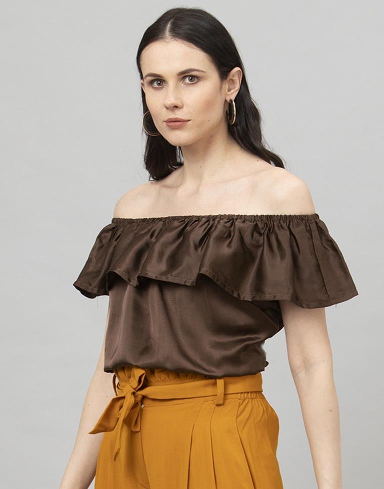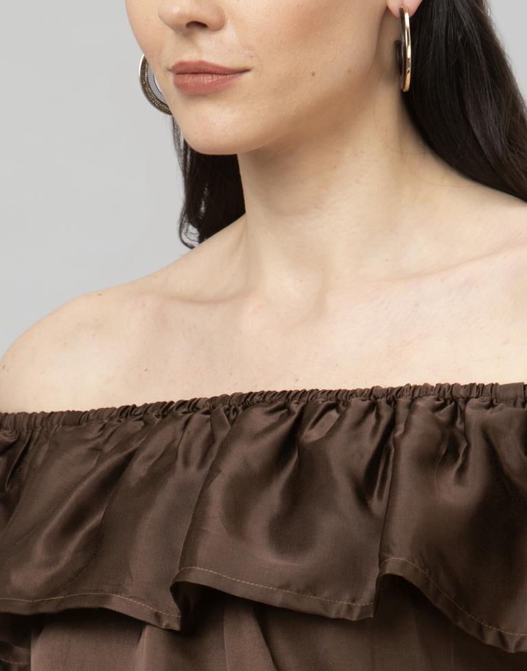 Ambitious Brown Coloured Plain Satin Silk Tops