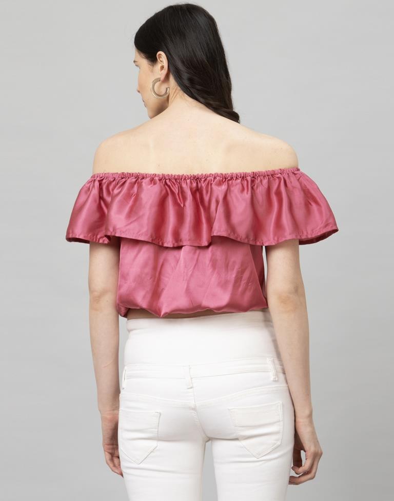 Dreamy Rosewood Pink Coloured Plain Satin Silk Tops
