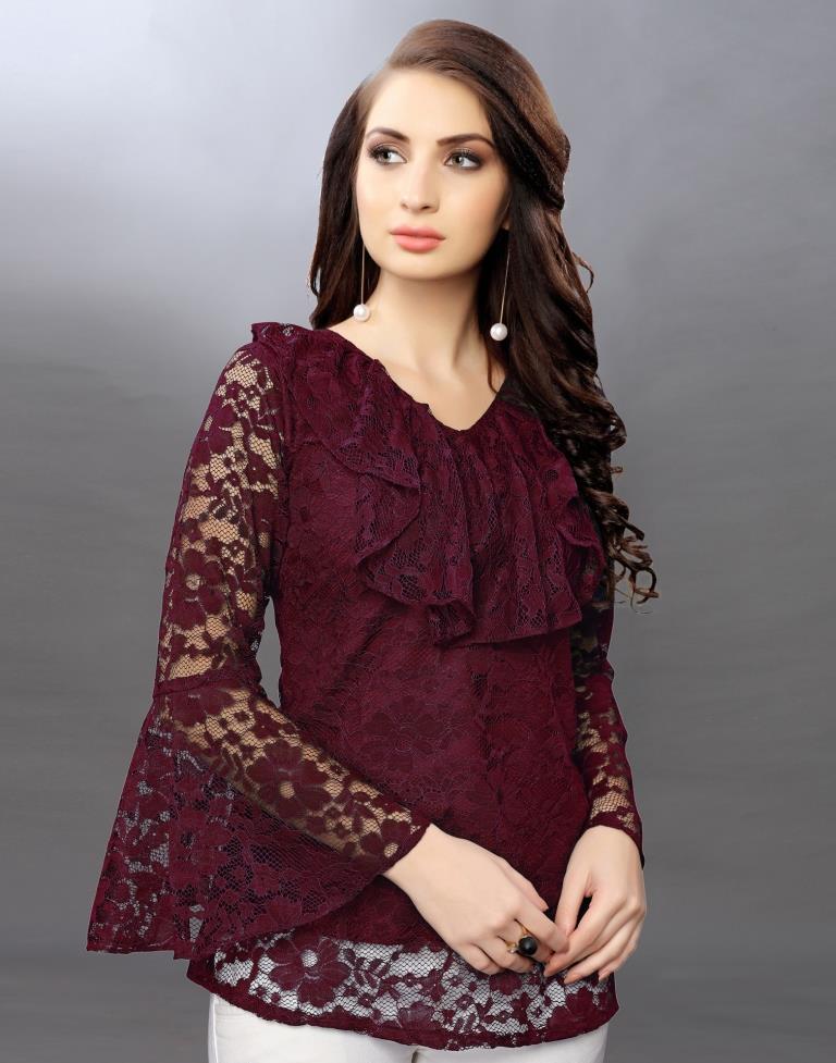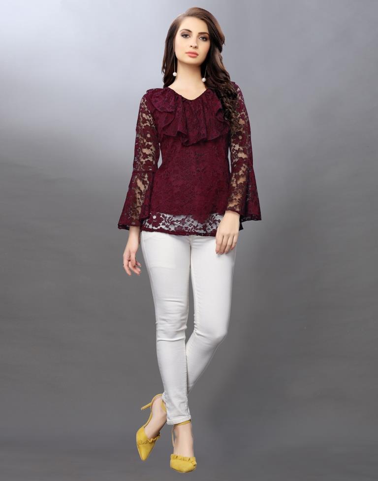 Be the first to review “Beguiling Maroon Coloured Net Russell Net Tops”