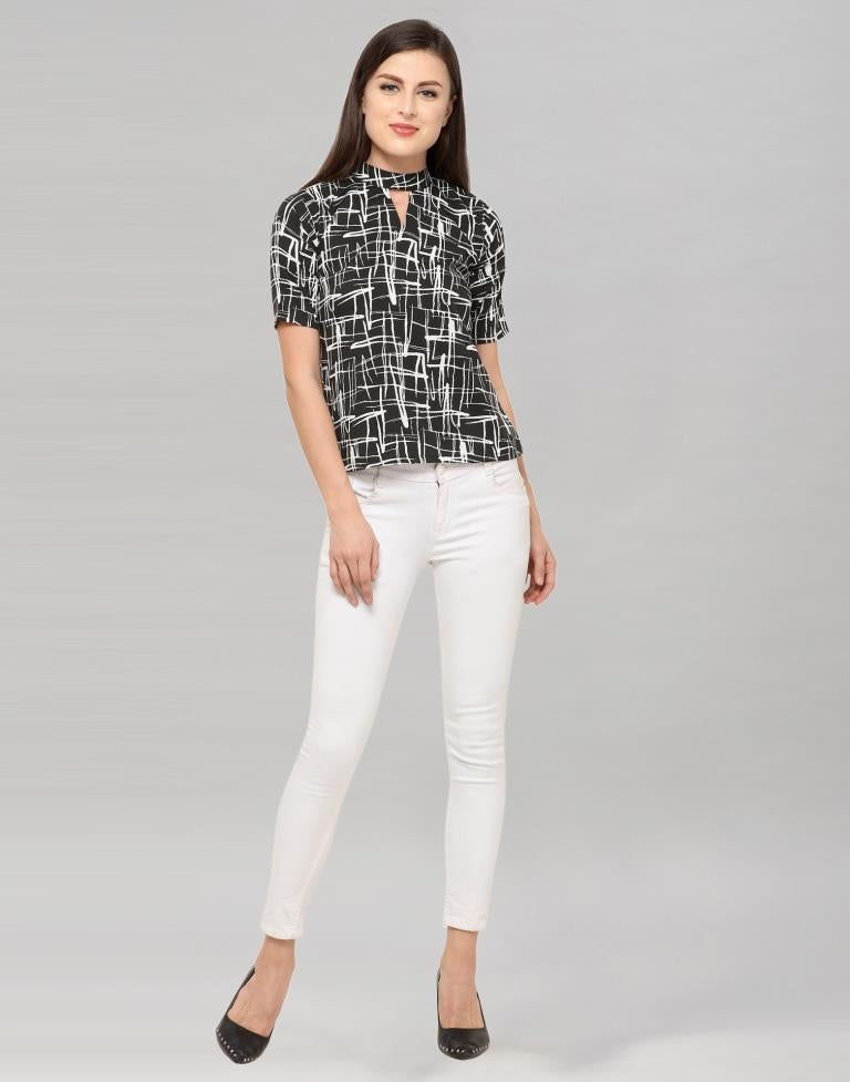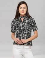 Be the first to review “Black And White Coloured Printed Crepe Top”