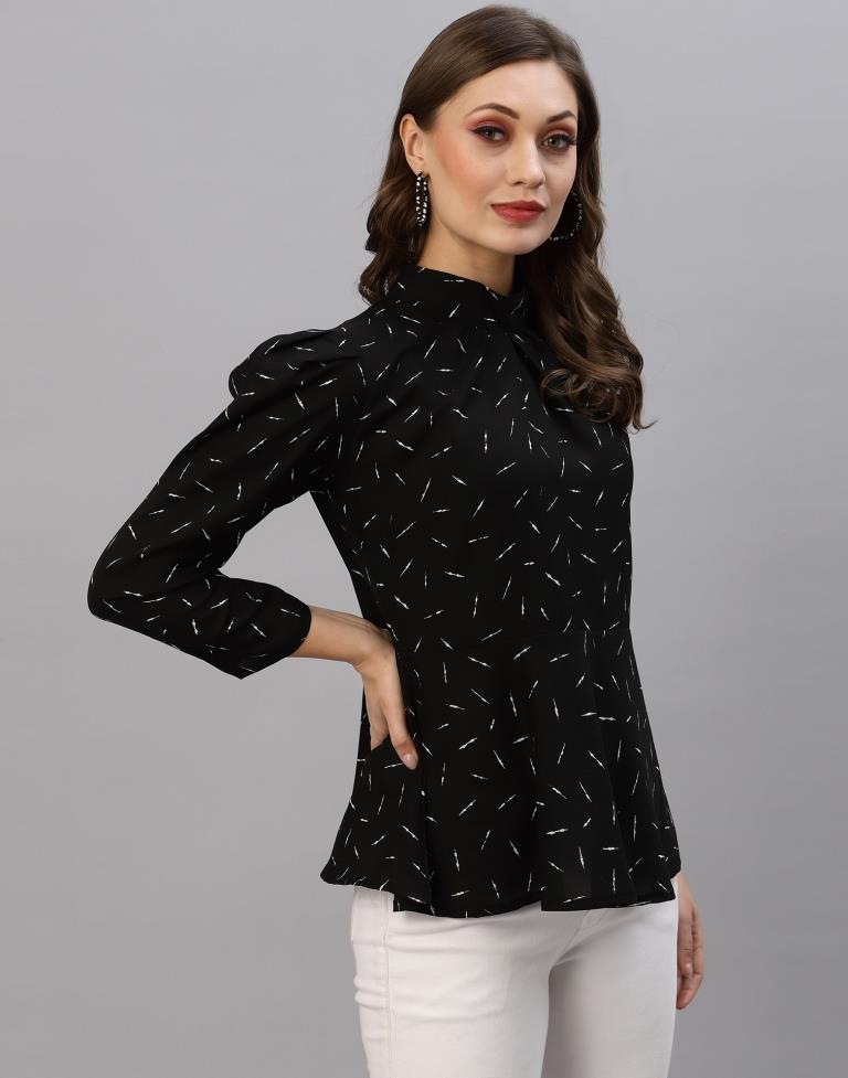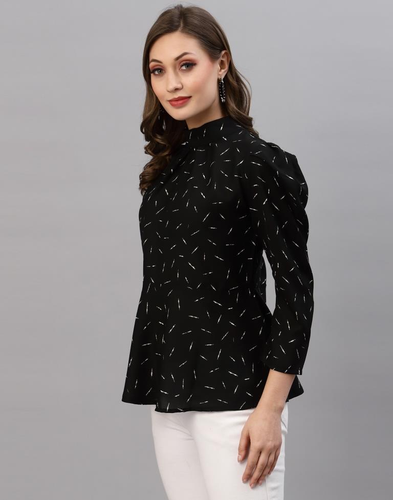 Black Mandarin Neck Top