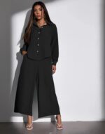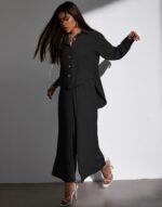 Be the first to review “Black Polyester Plain Co-ord Set”