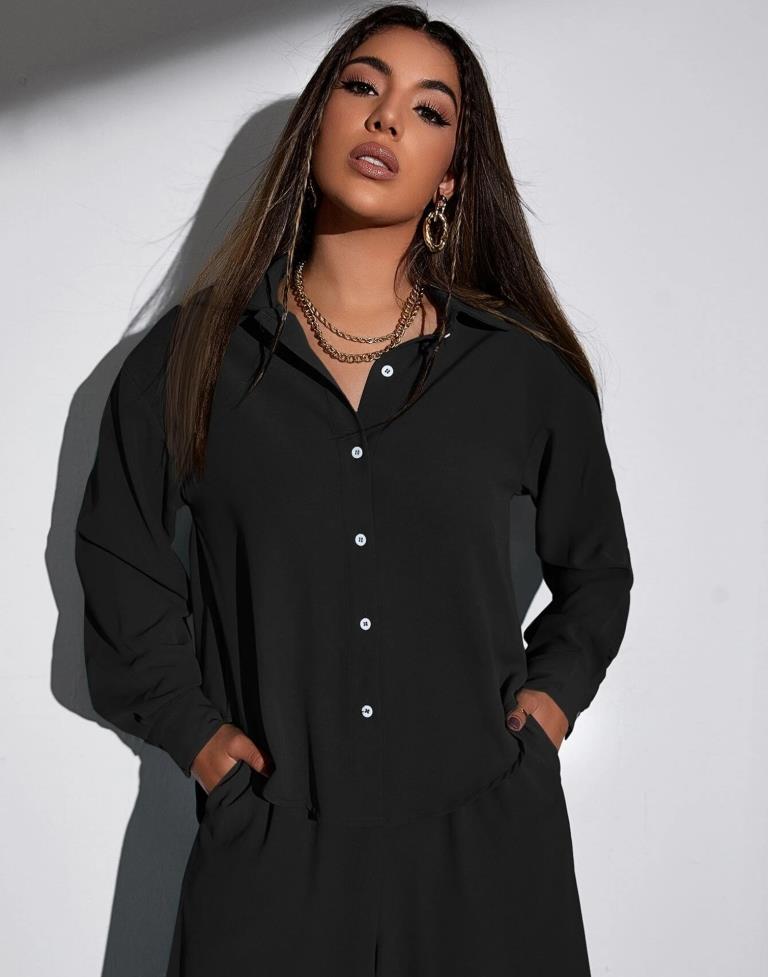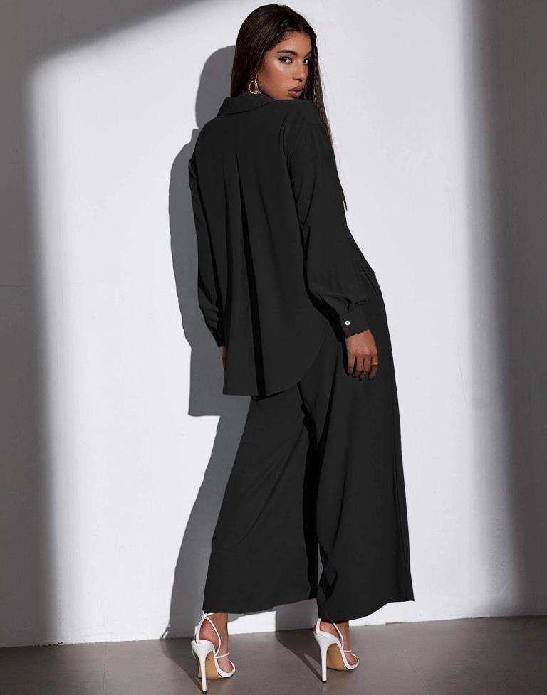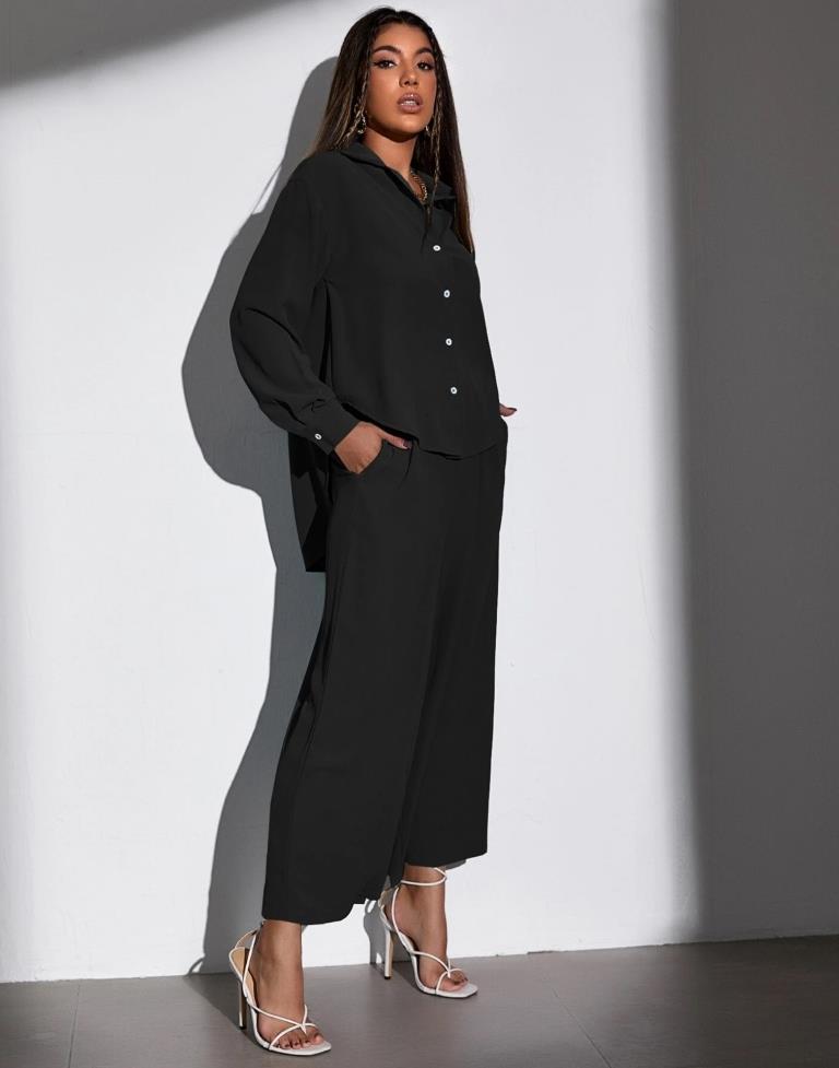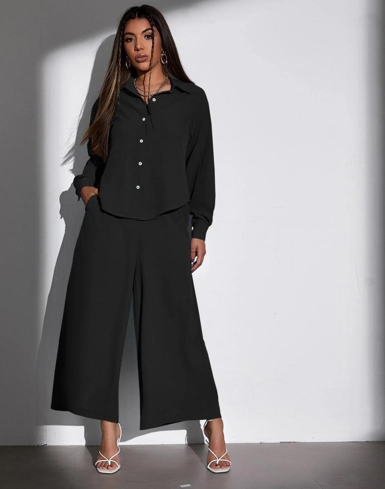 Black Polyester Plain Co-ord Set