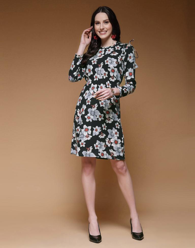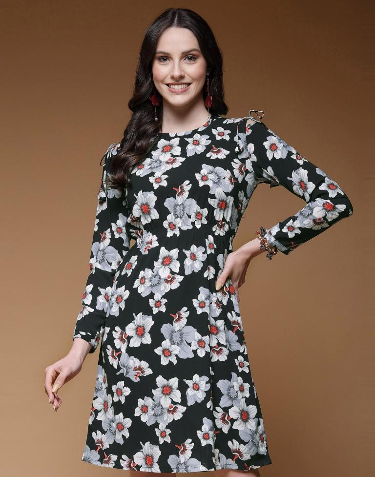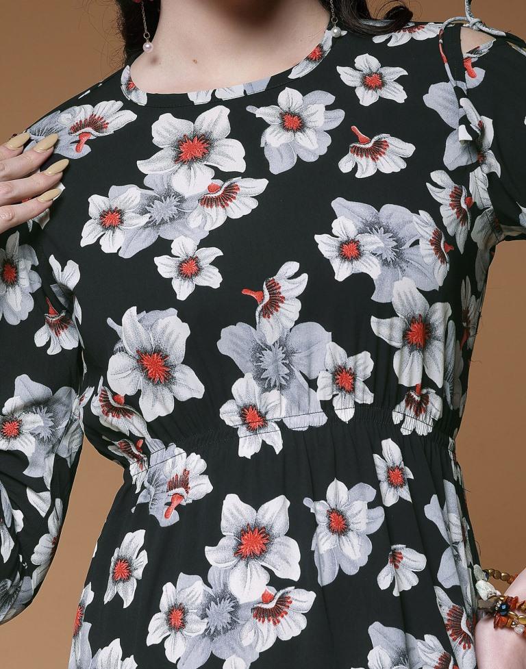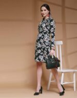 Be the first to review “Black Viscose Printed A-Line Dress”