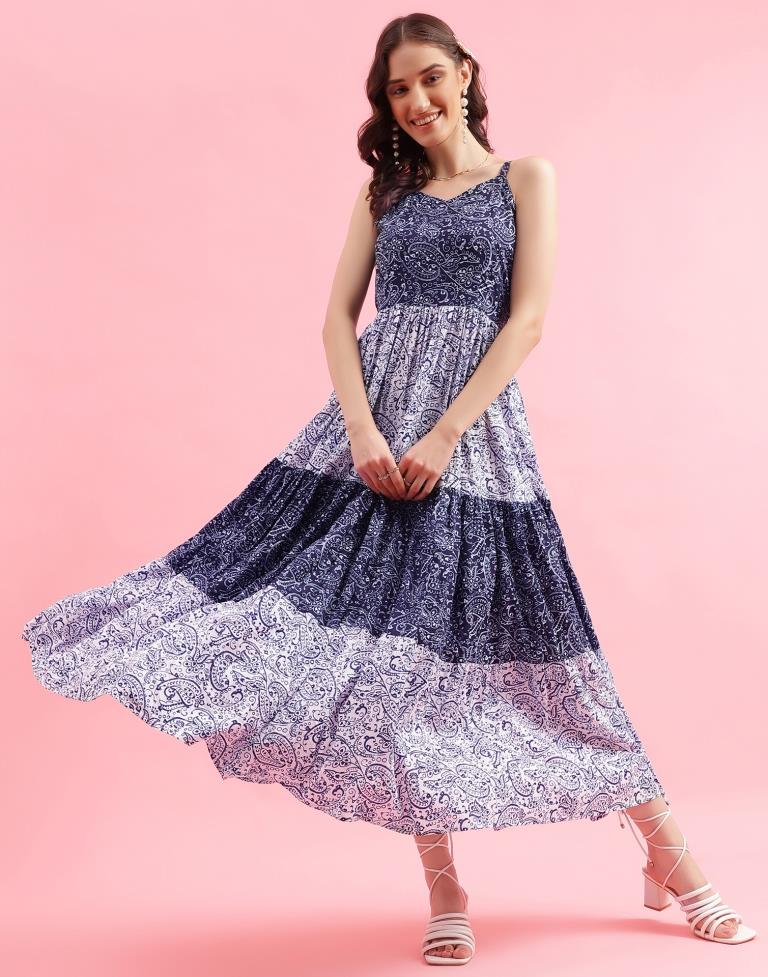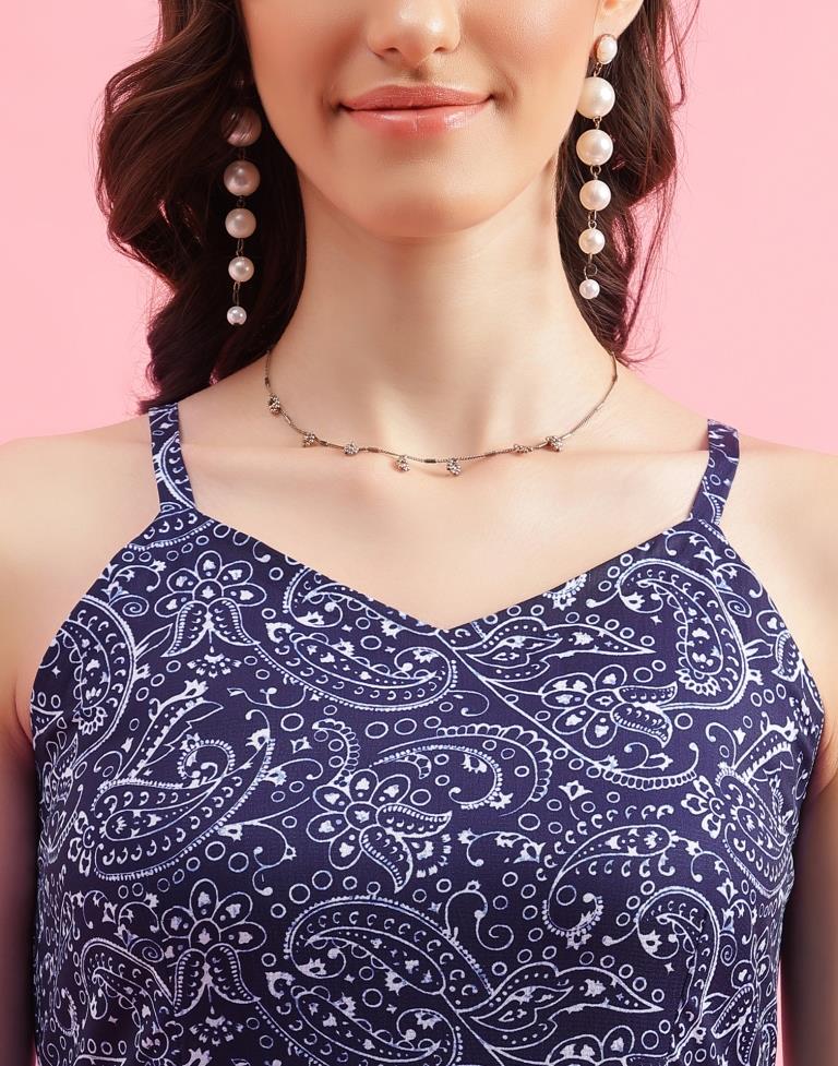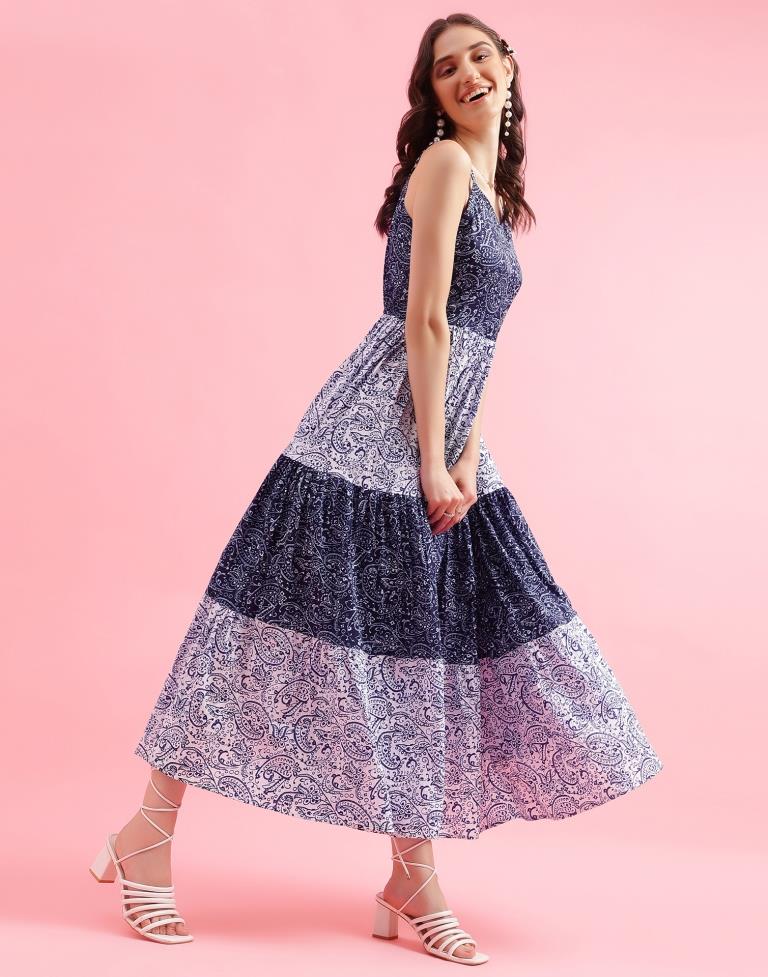 Navy Blue Printed Flared Dress Original price was: ₹2,499.00.Current price is: ₹949.00.