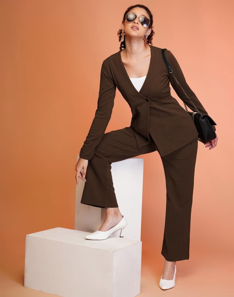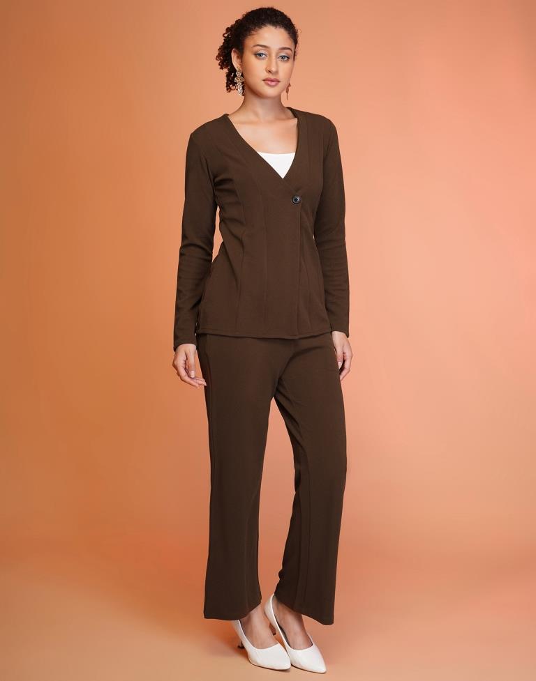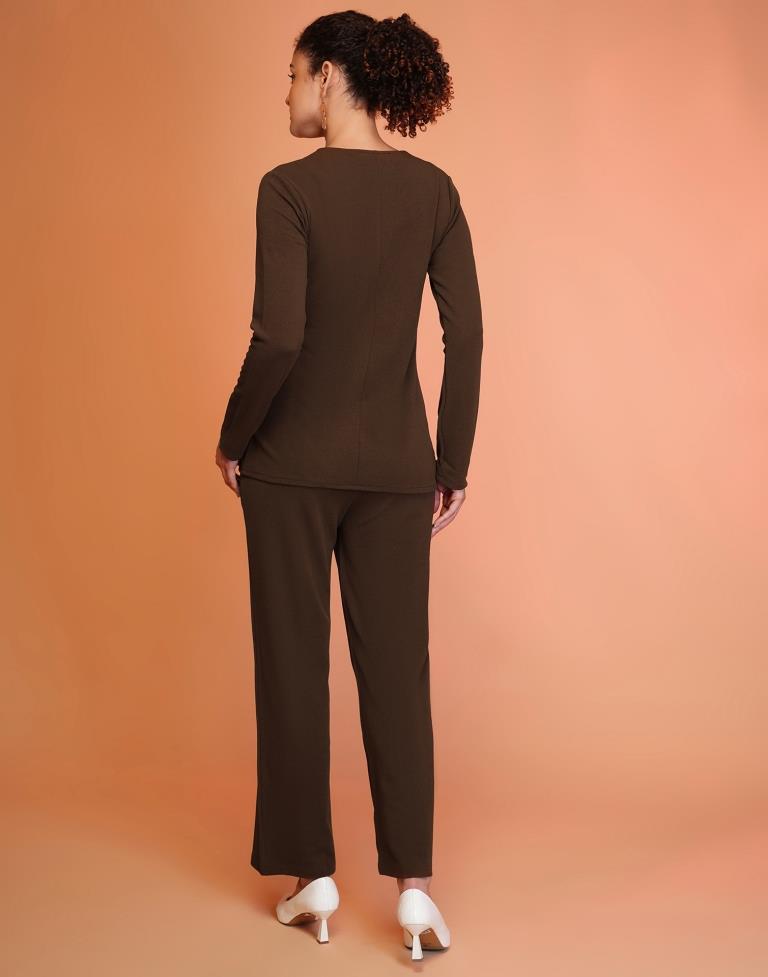 Brown Lycra Plain Co-ord Set