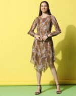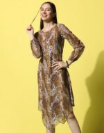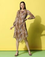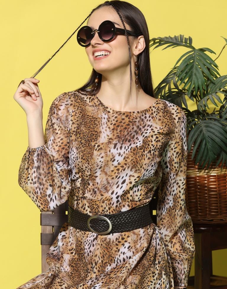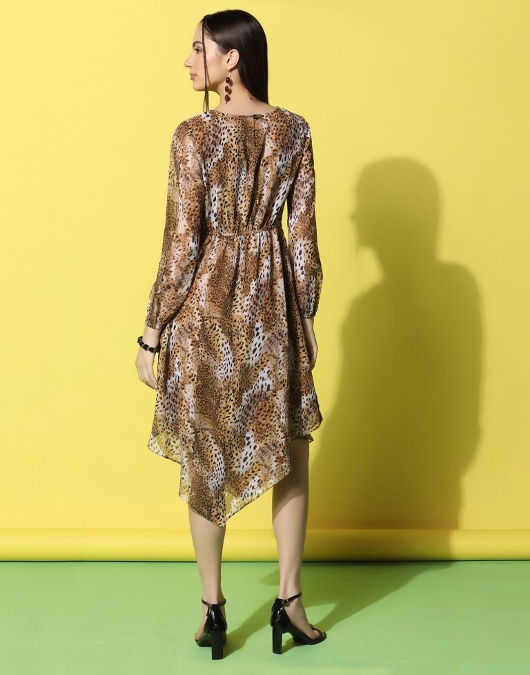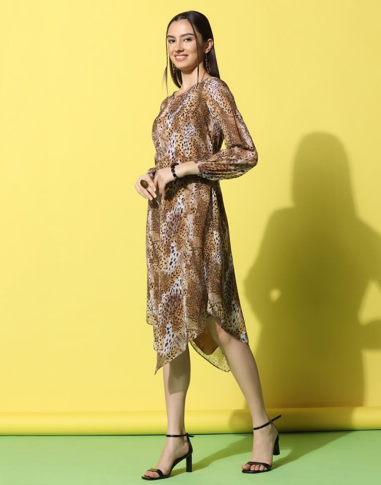 Orange Crepe Printed Straight Dress