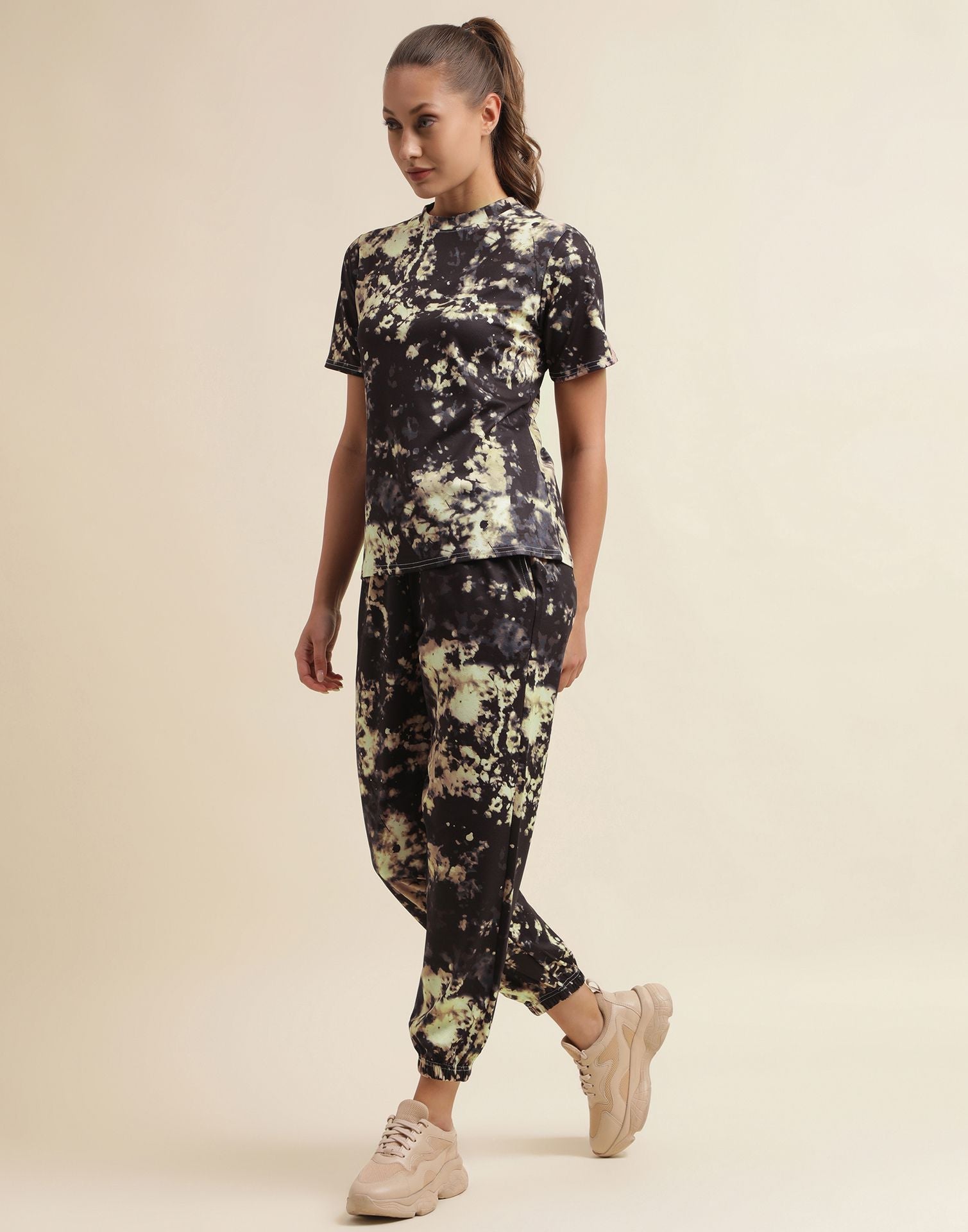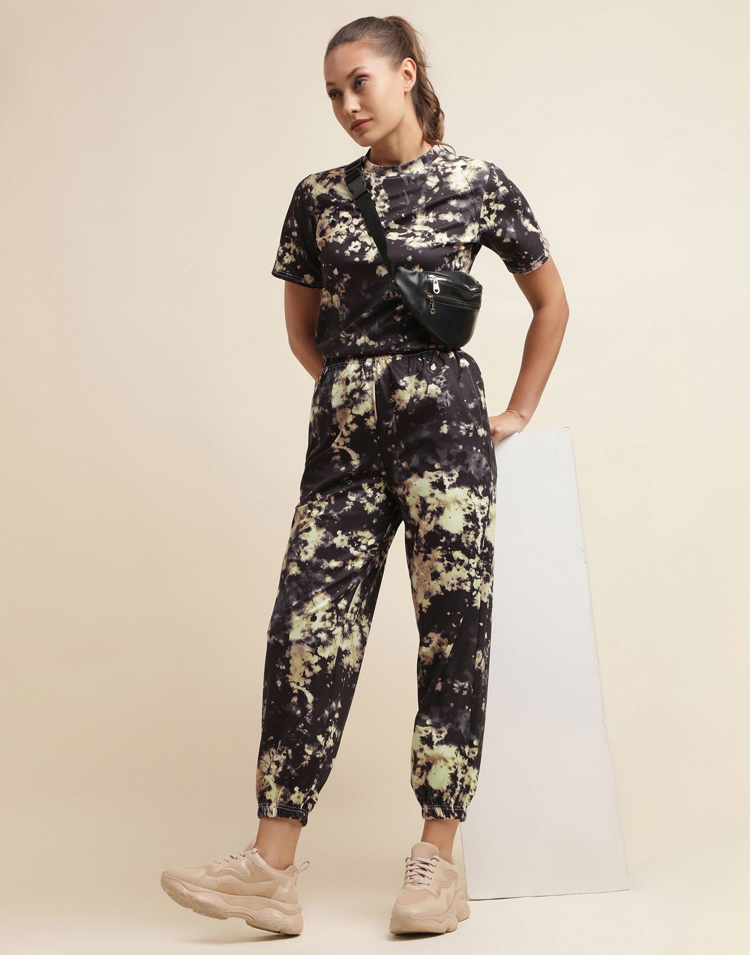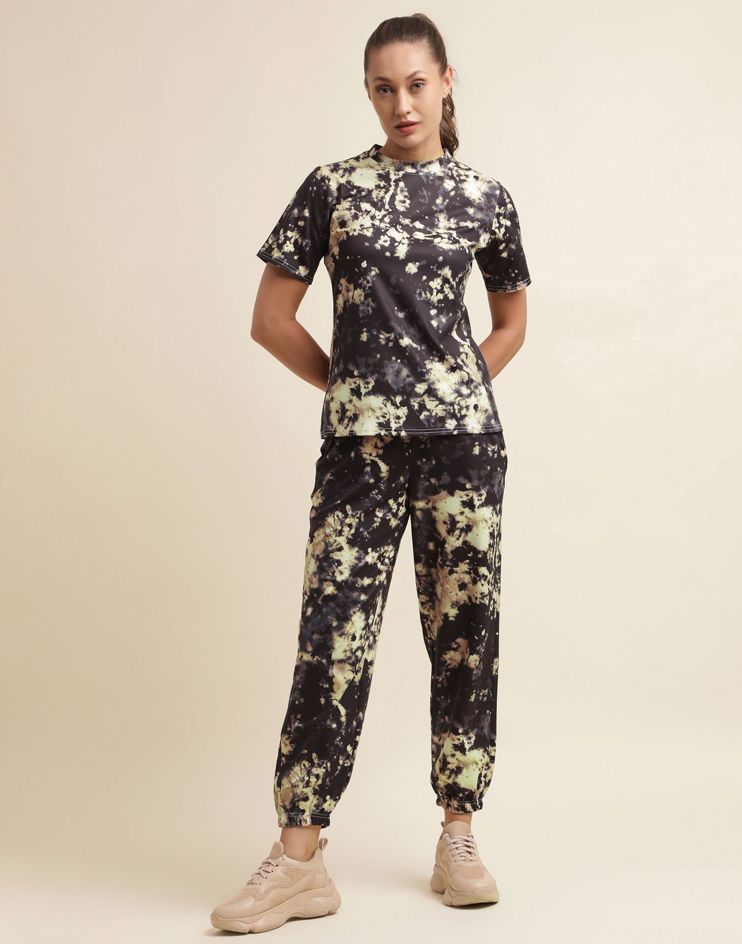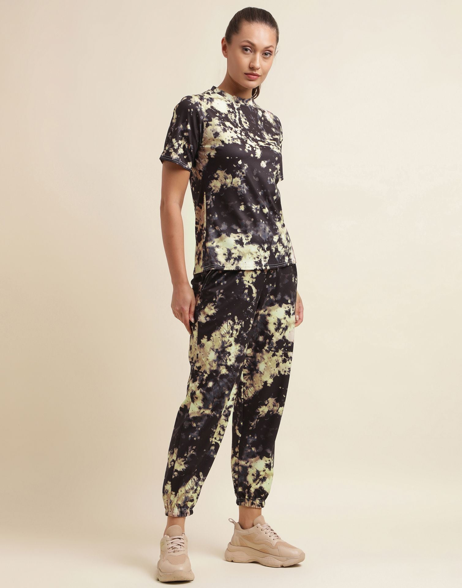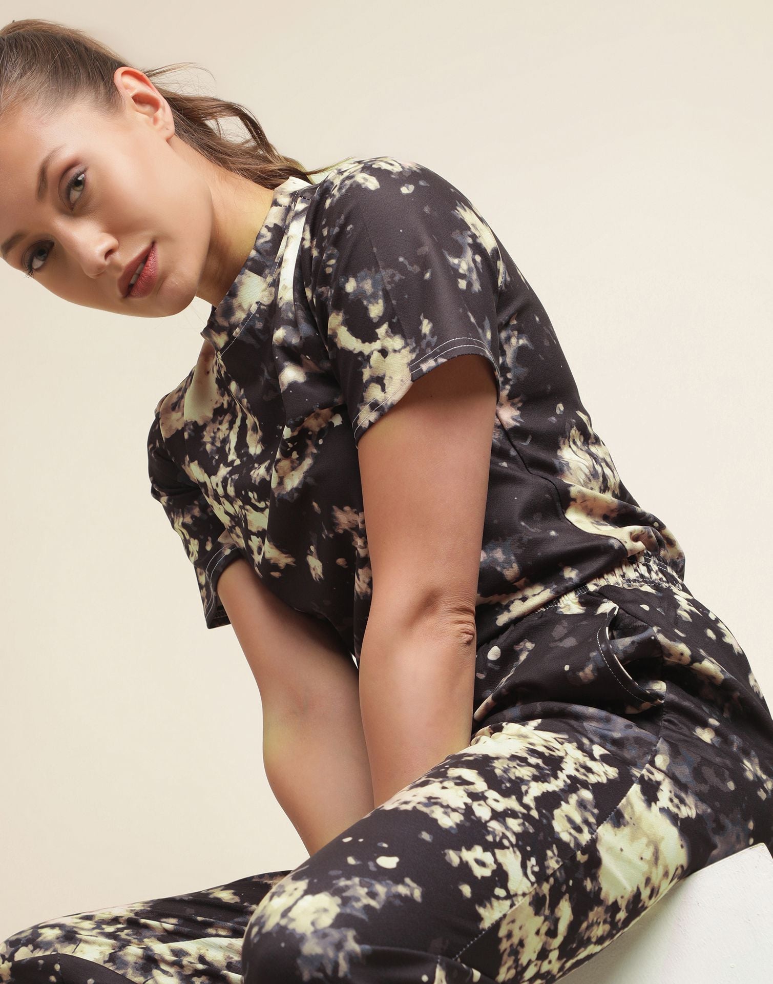 Cream & Black Tie-dye Co-ord Set