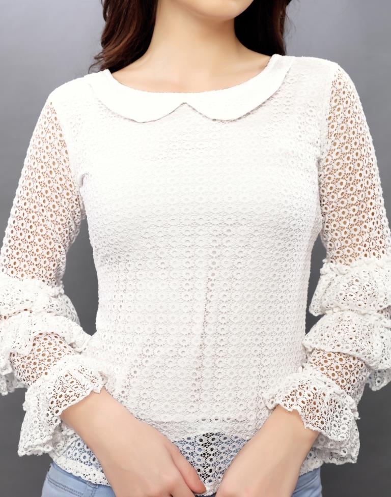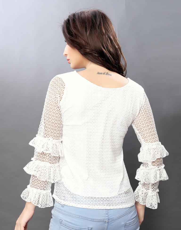 Alluring White Coloured Net Russell Net Tops