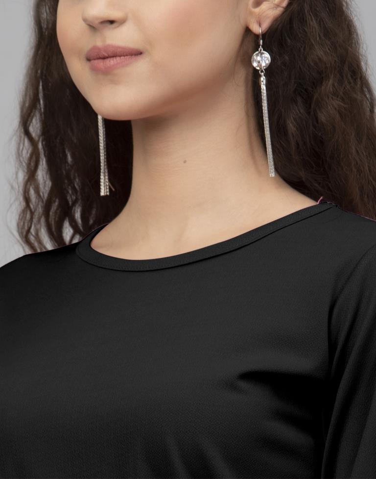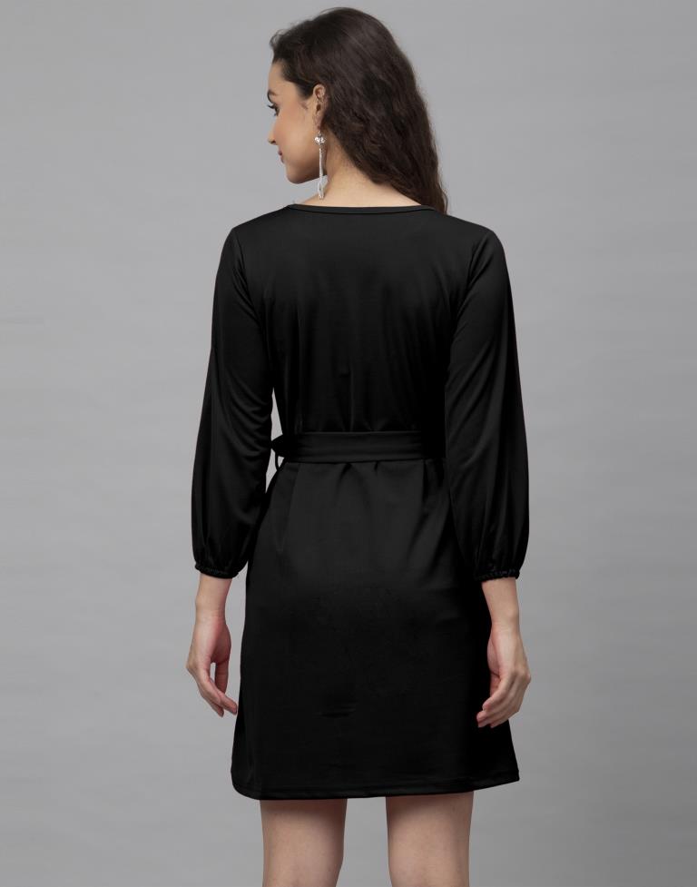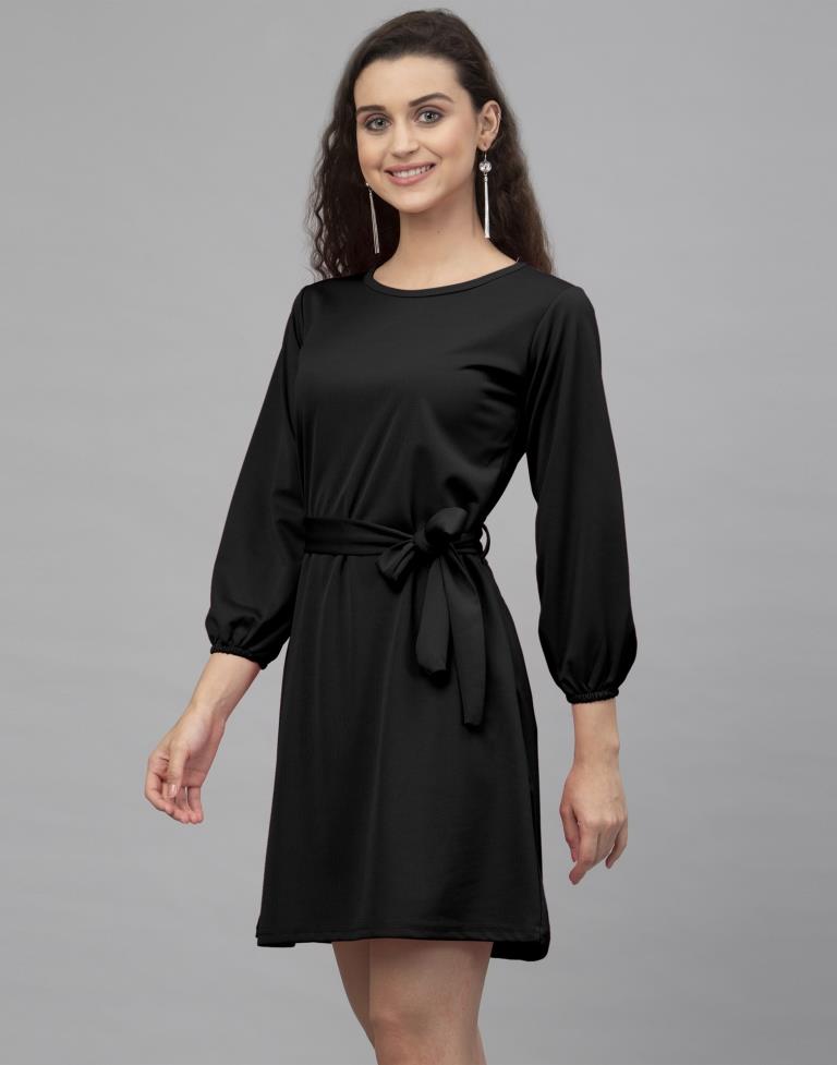 Desirable Black Coloured Knitted Lycra Dress