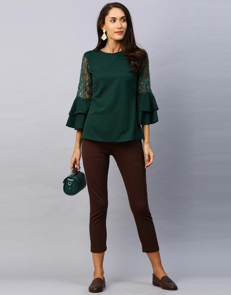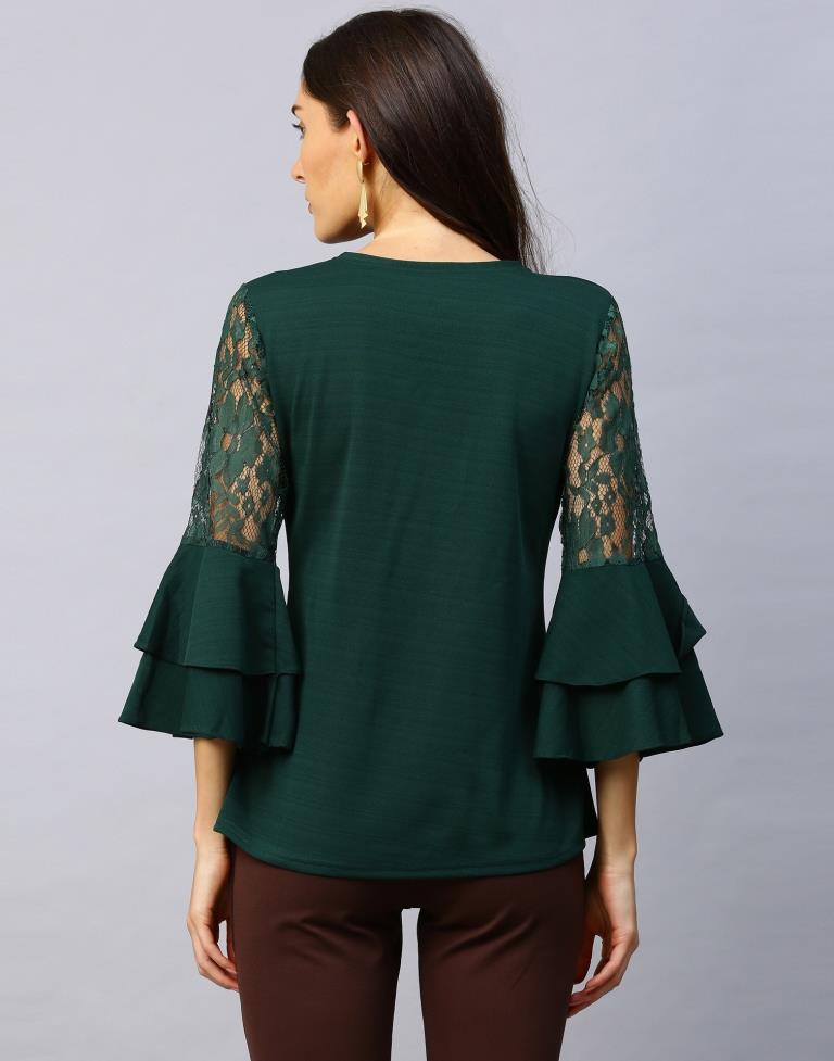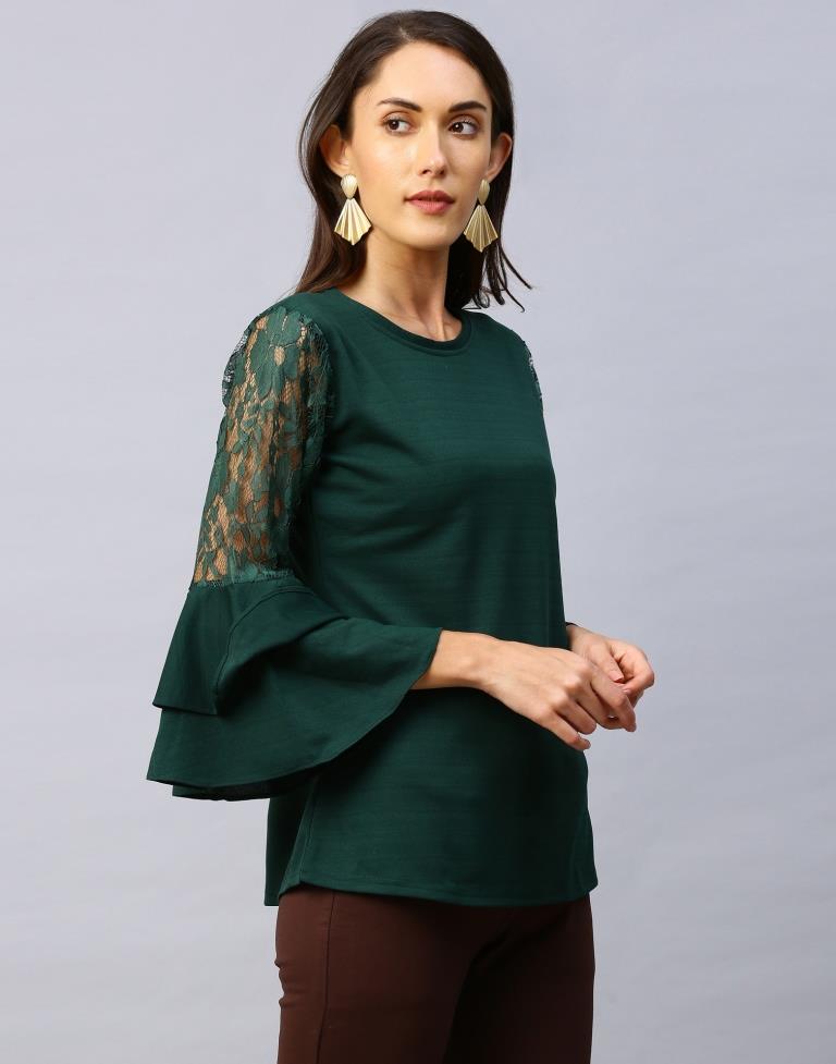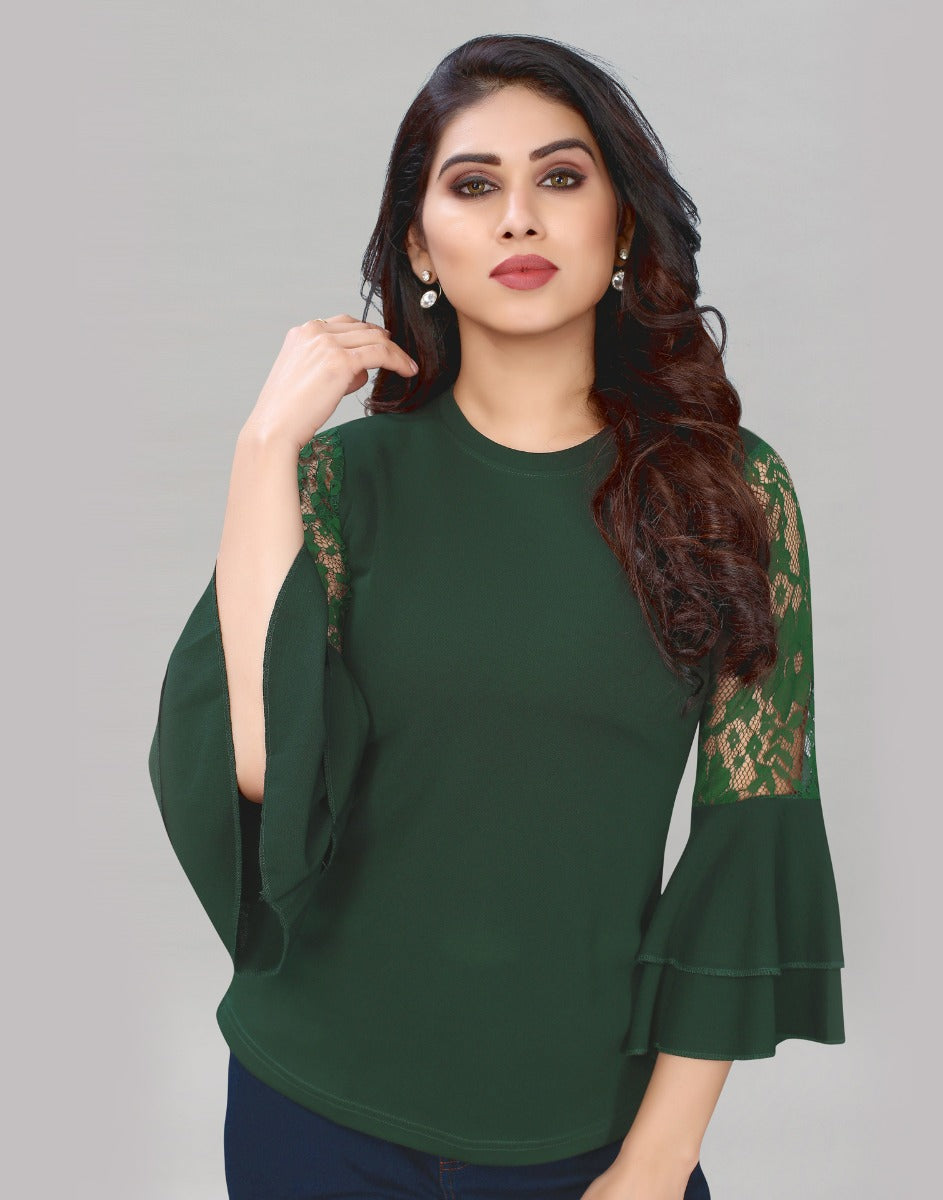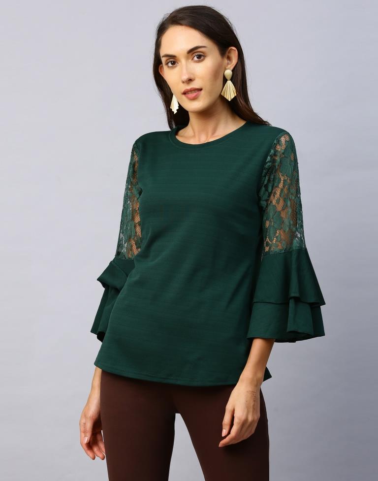 Dynamic Green Coloured Russell Net Lycra Tops