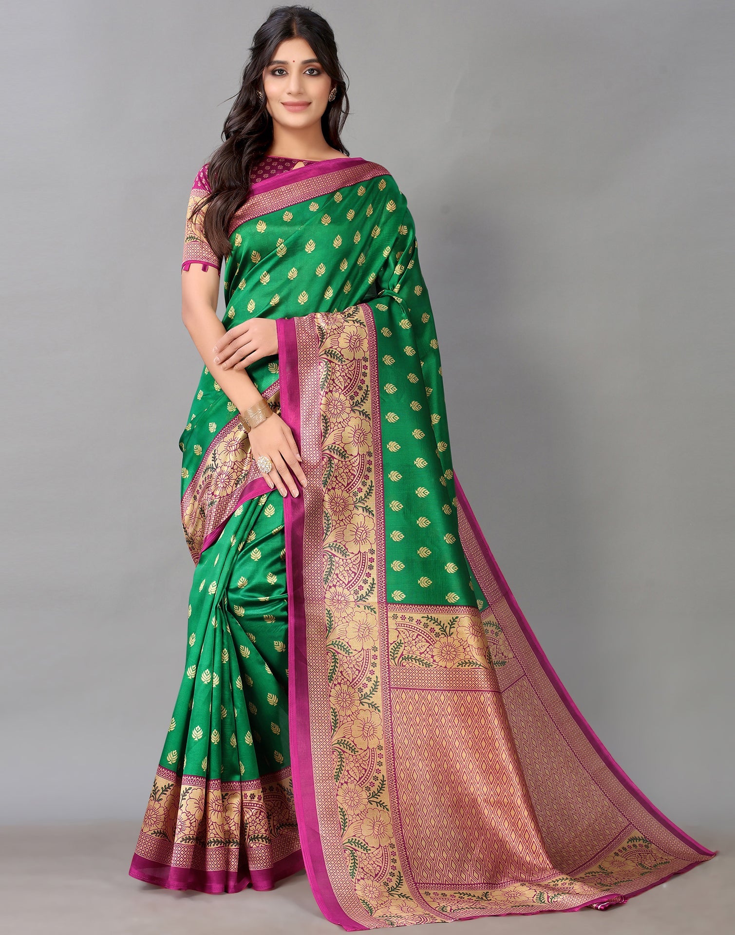 Green And Beige Silk Saree