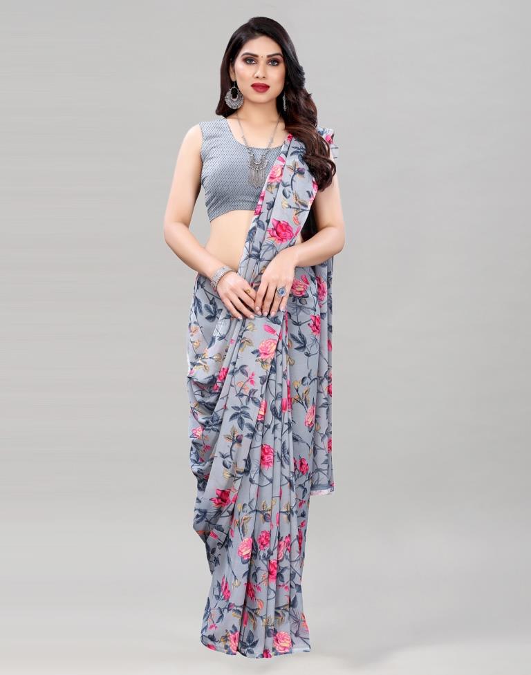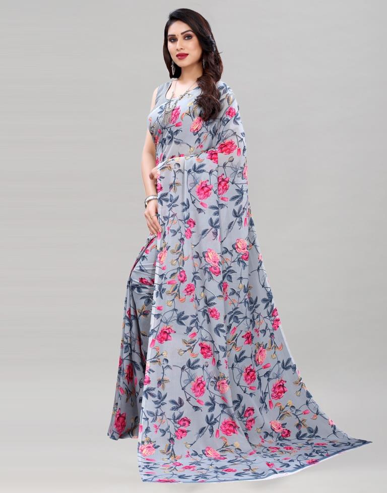 Grey Printed Saree