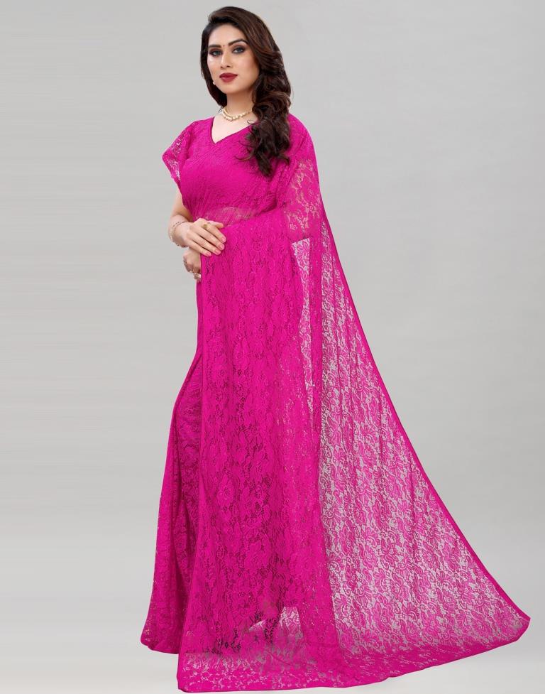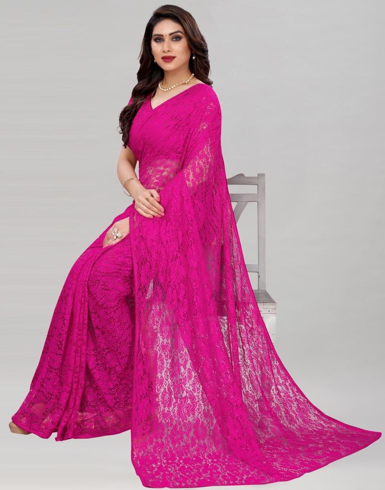 Be the first to review “Hot Pink Coloured Russel Net Partywear saree”