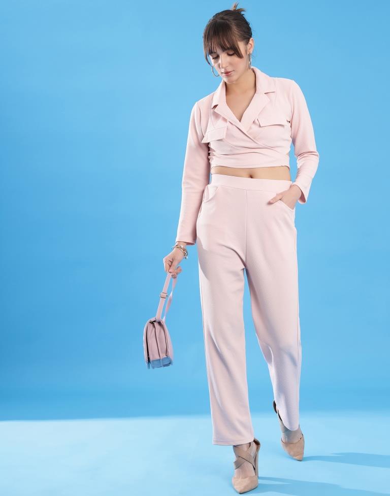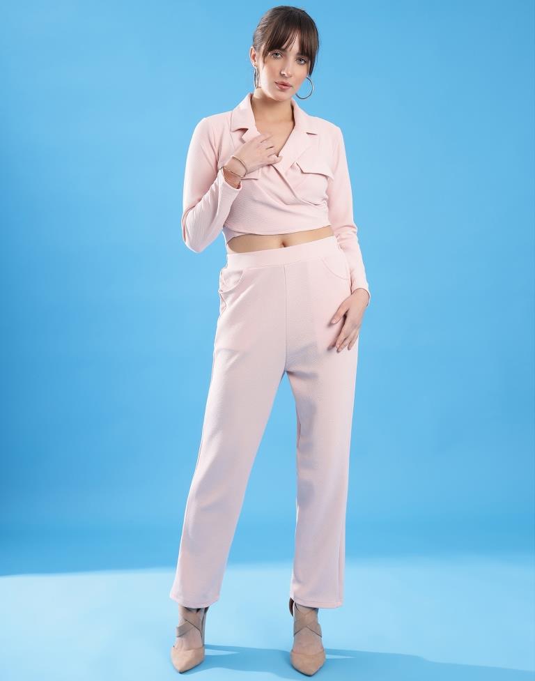Light Pink Lycra Plain Co-ords Set