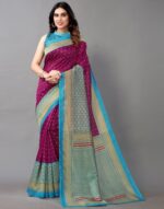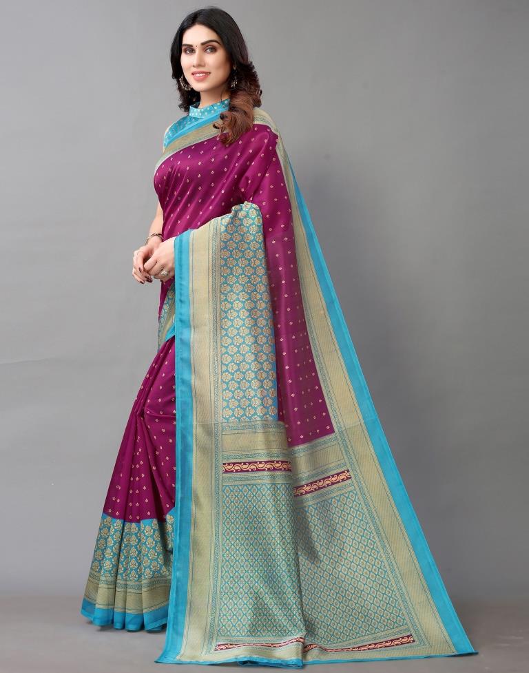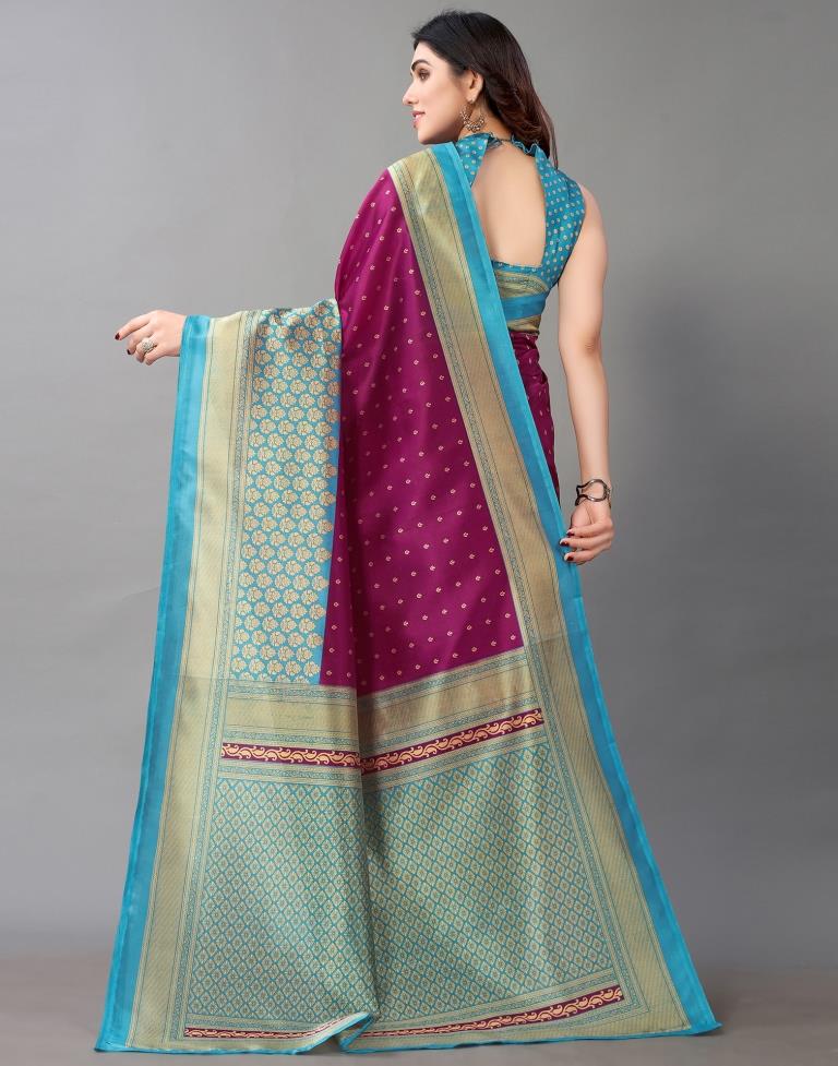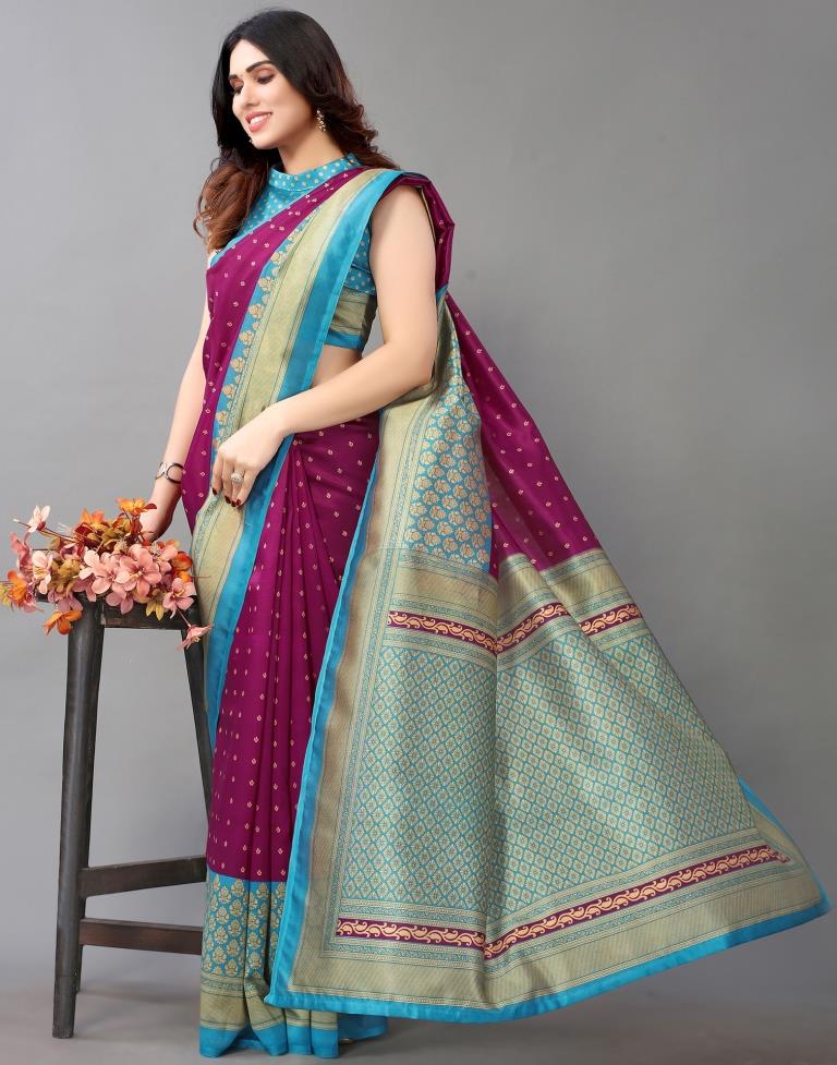 Magenta And Beige Silk Saree