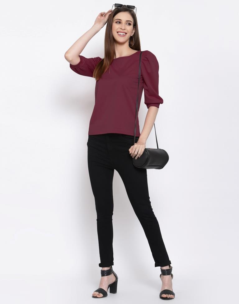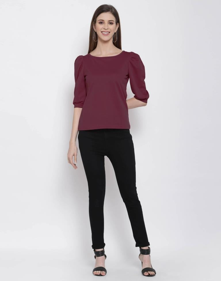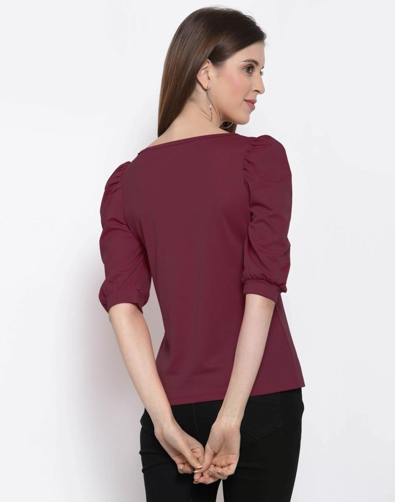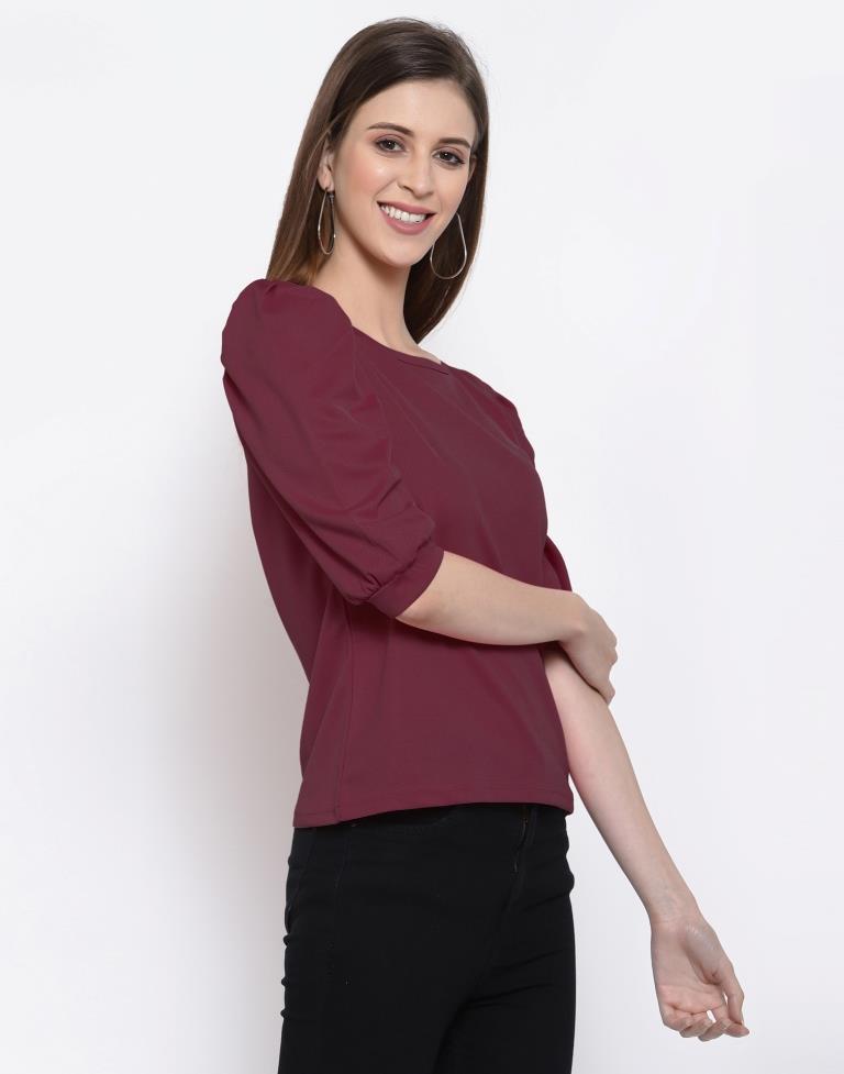Maroon Coloured Knitted Lycra Top