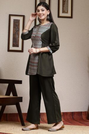 Dark Olive Green Muslin Printed Co-ord Set Original price was: ₹2,599.00.Current price is: ₹849.00.
