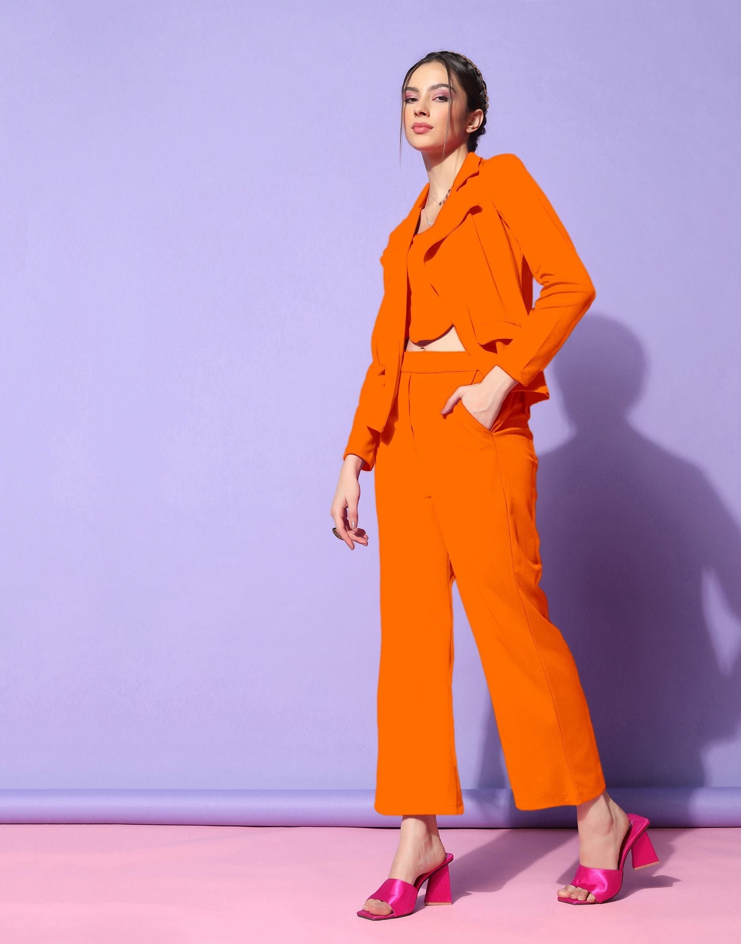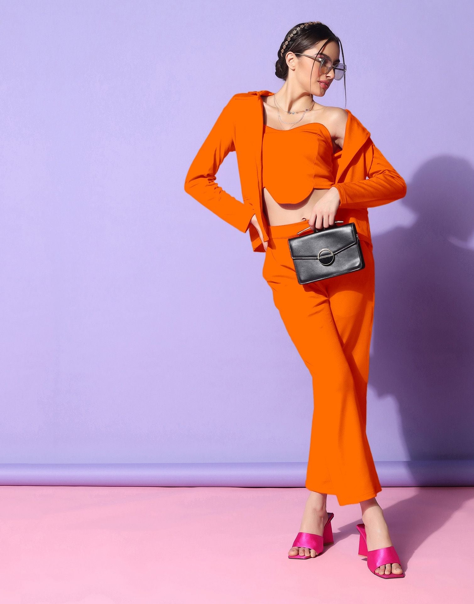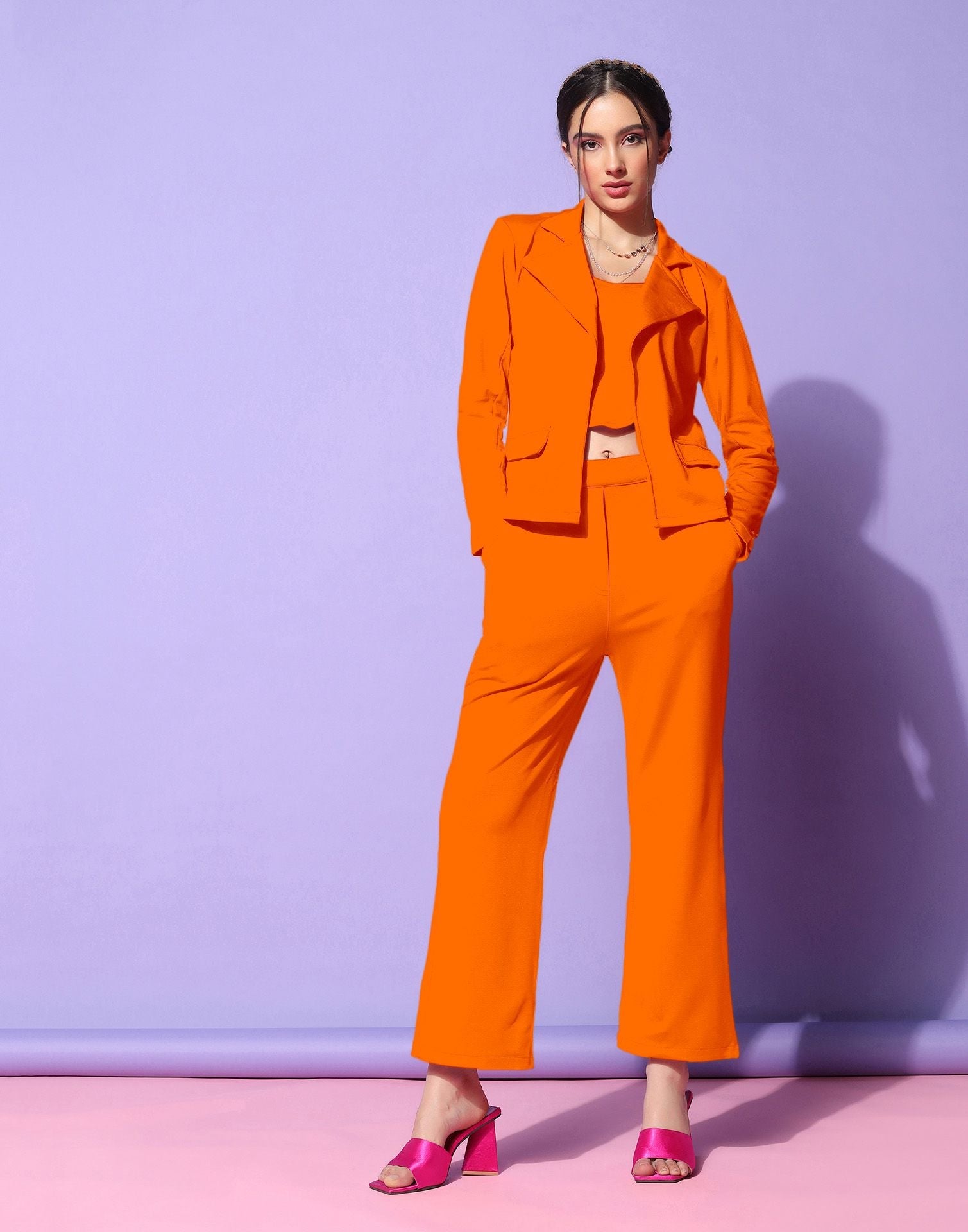 Be the first to review “Orange Lycra Co-ord Set”