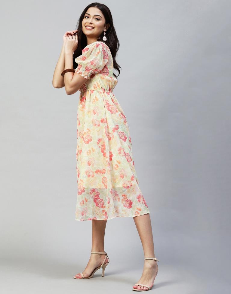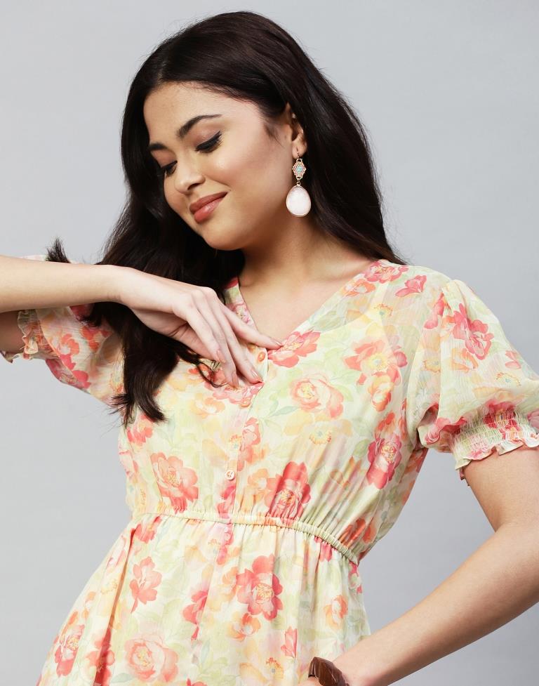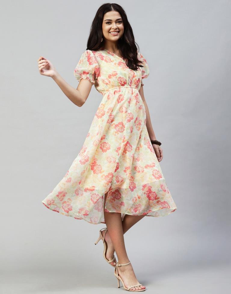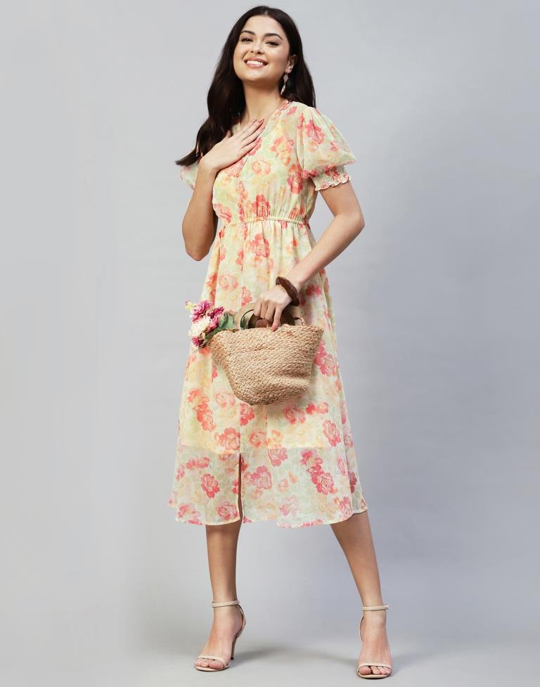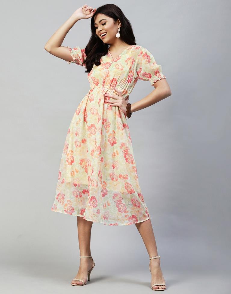 Orange Crepe Printed Straight Dress