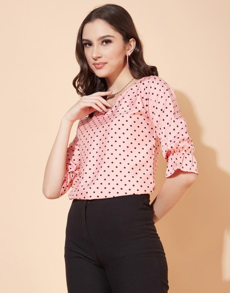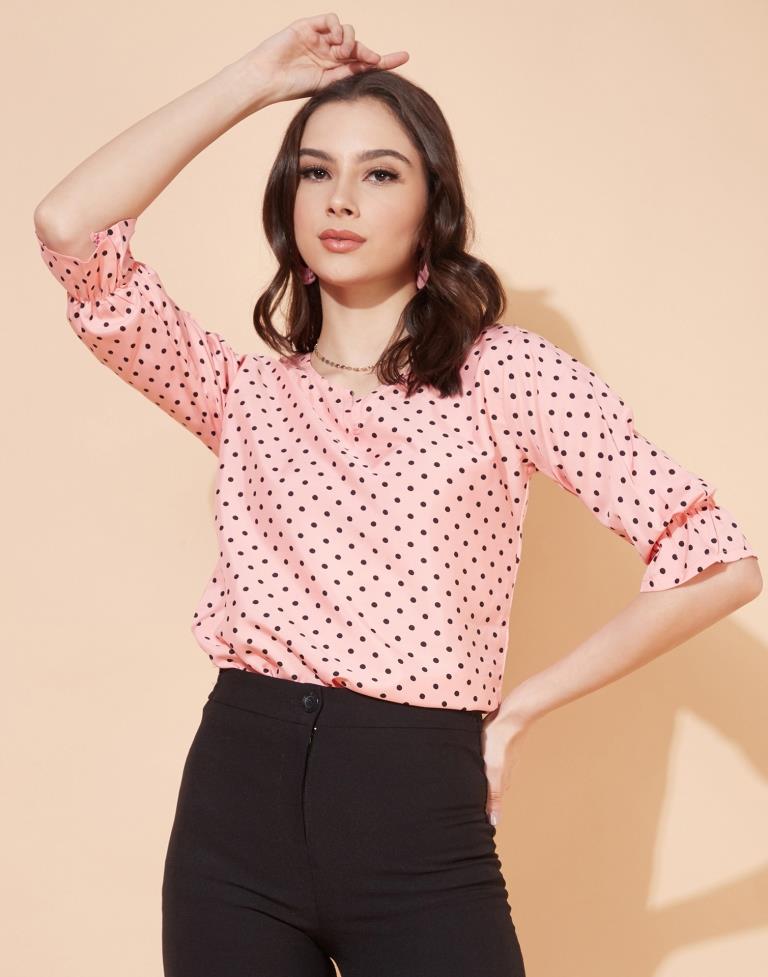 Peach Elastic Sleeve Top