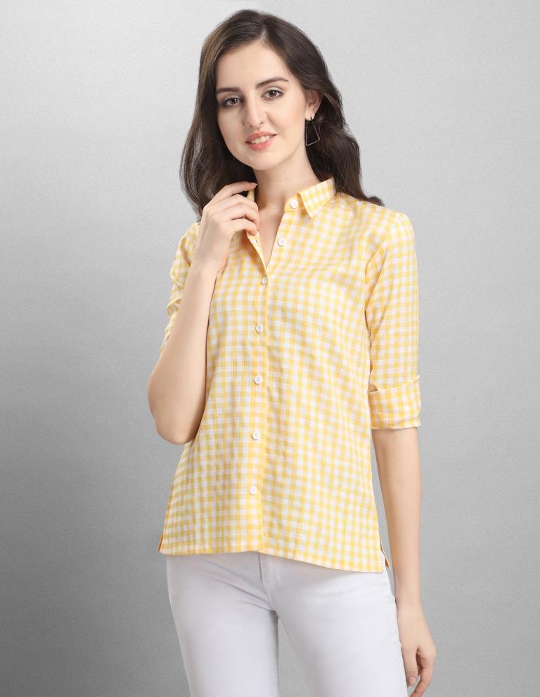 Precious Yellow Coloured Woven Checks Poly Cotton Tops