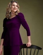 Be the first to review “Purple Puff Sleeve Solid Co-Ords Set”