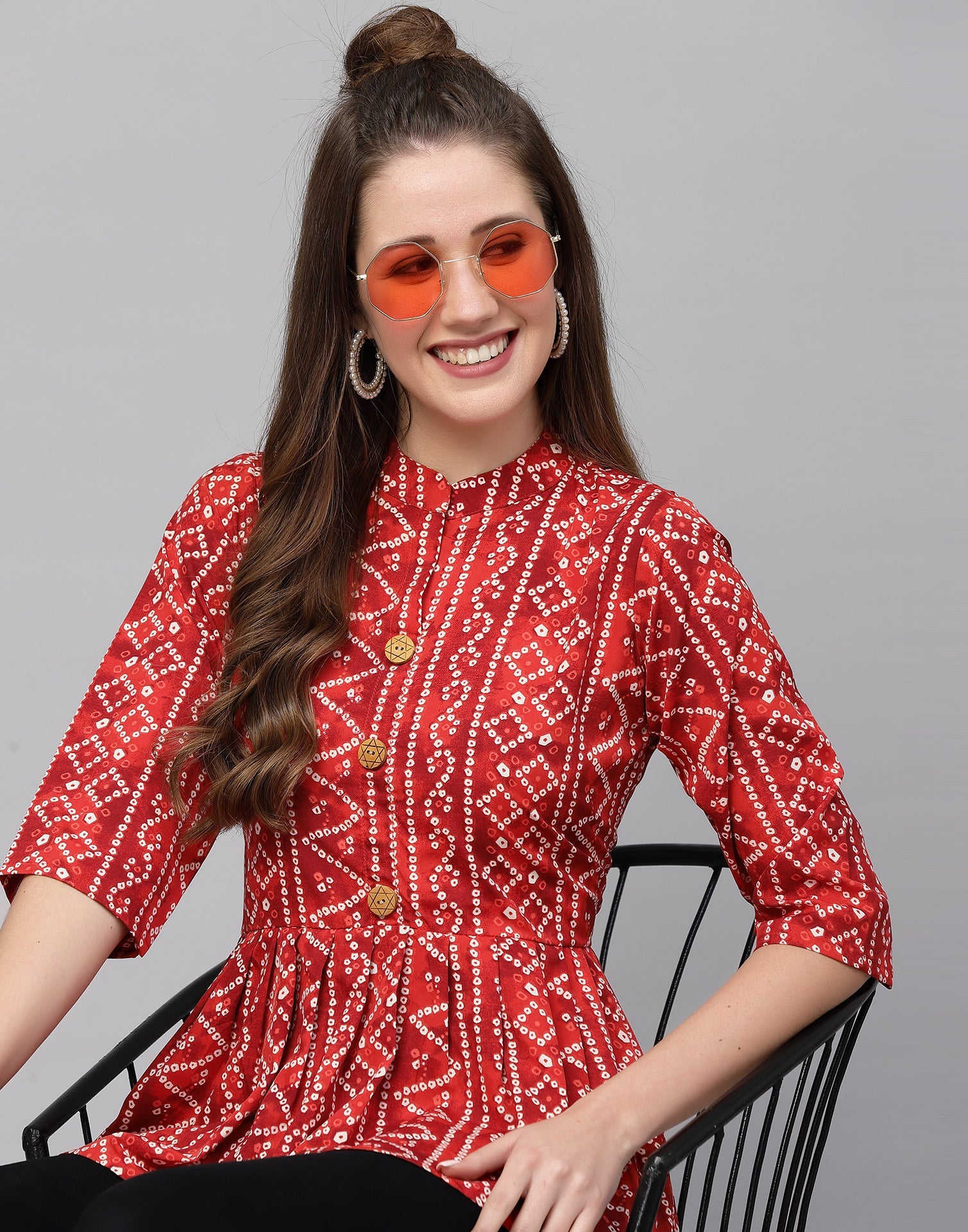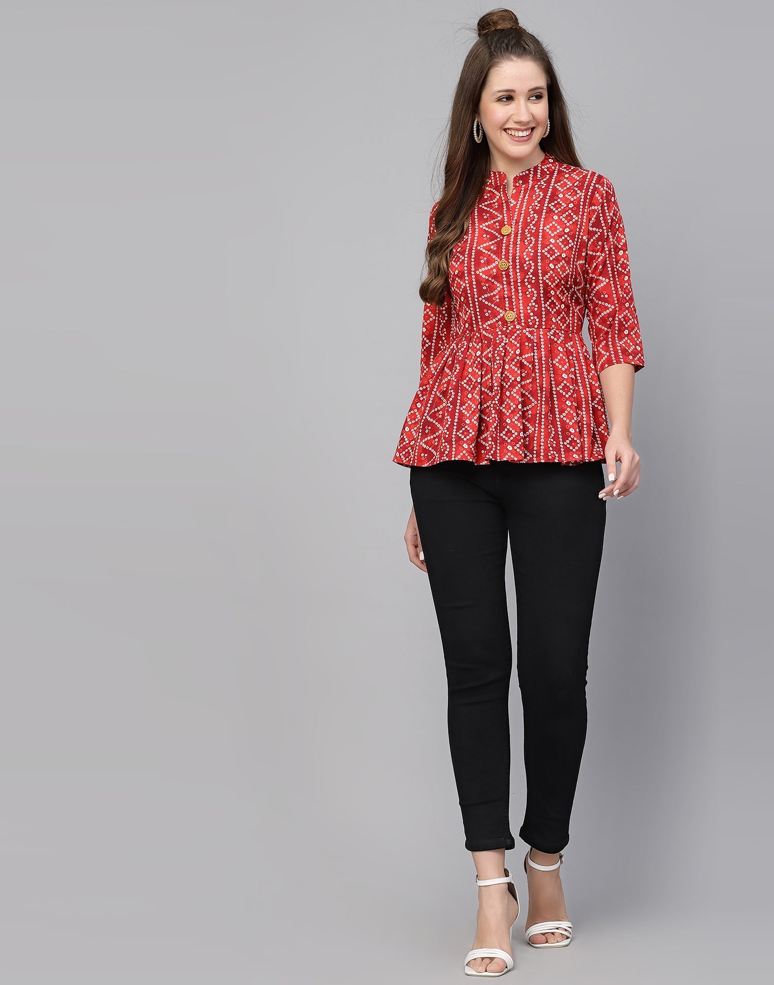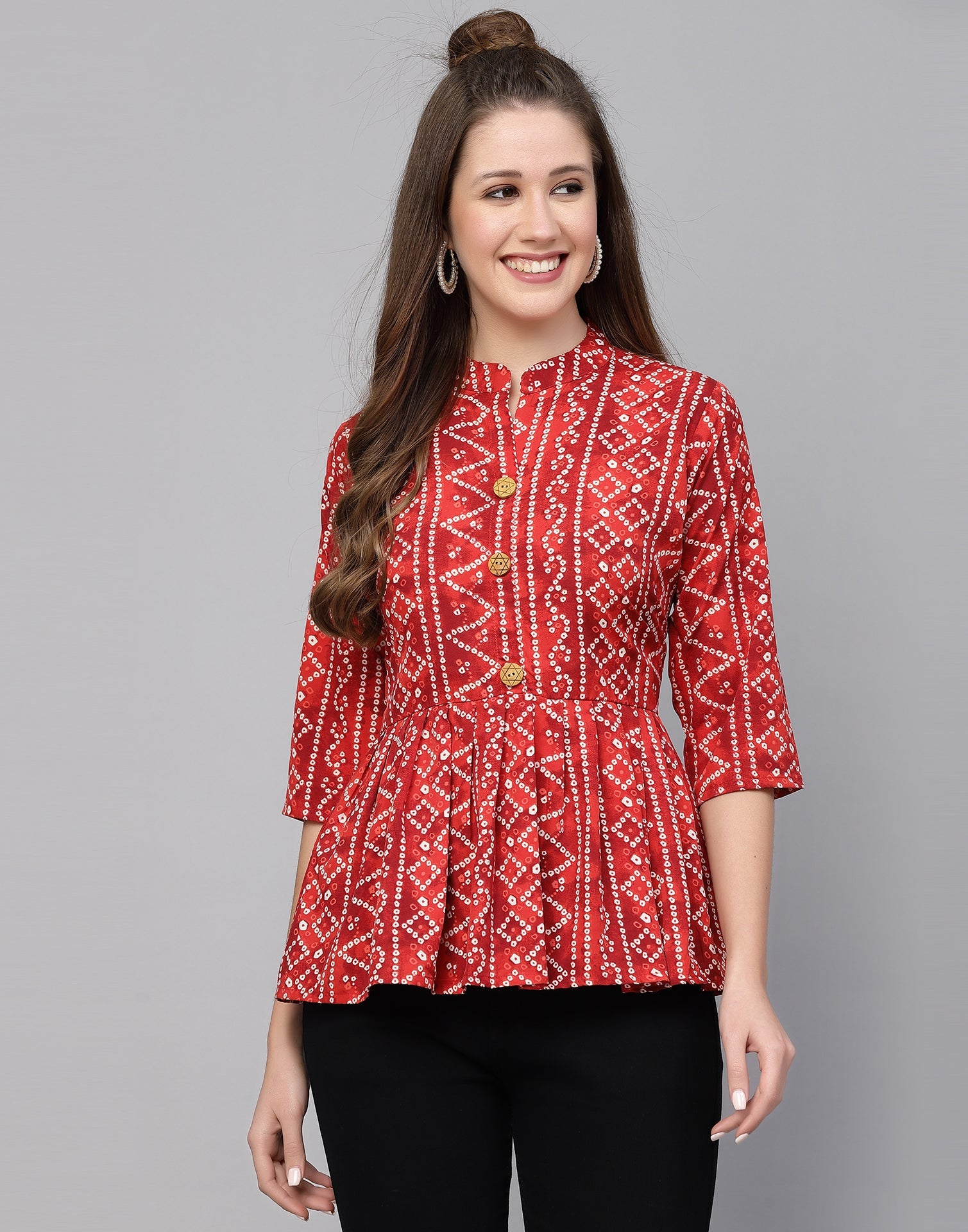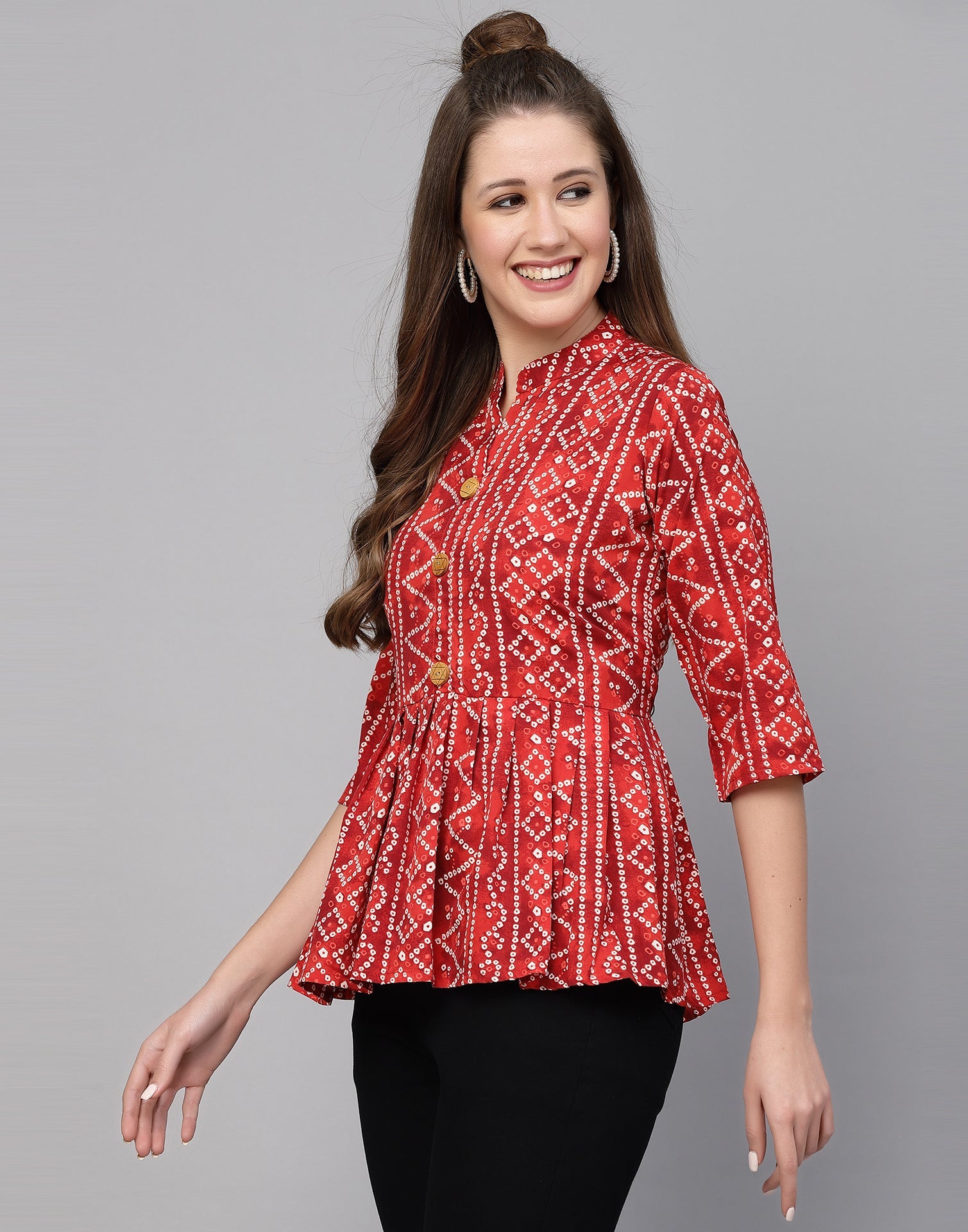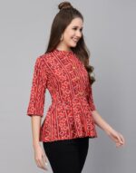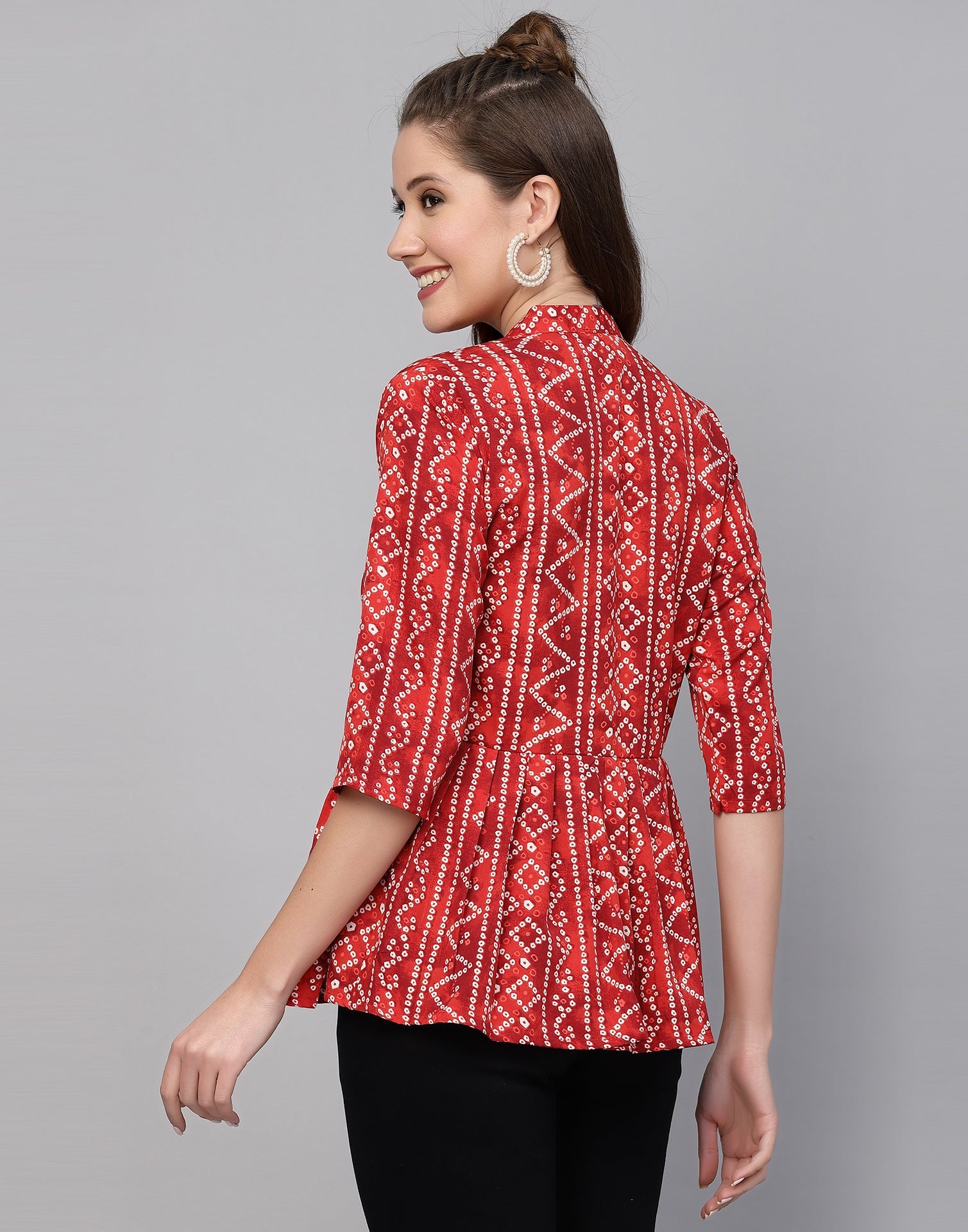 Be the first to review “Red Gathered Bandhani Printed Top”
