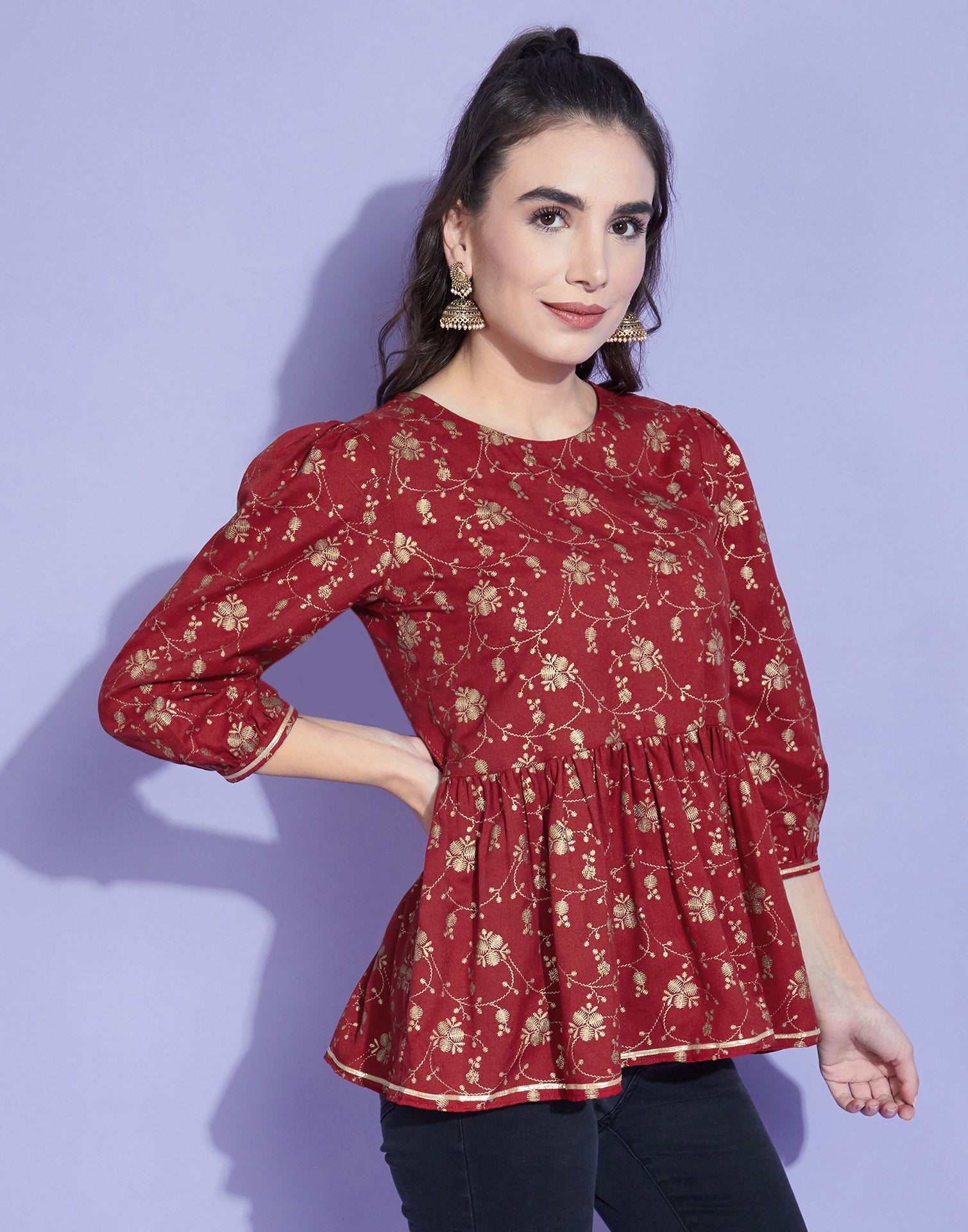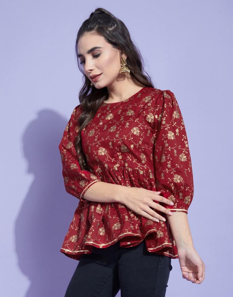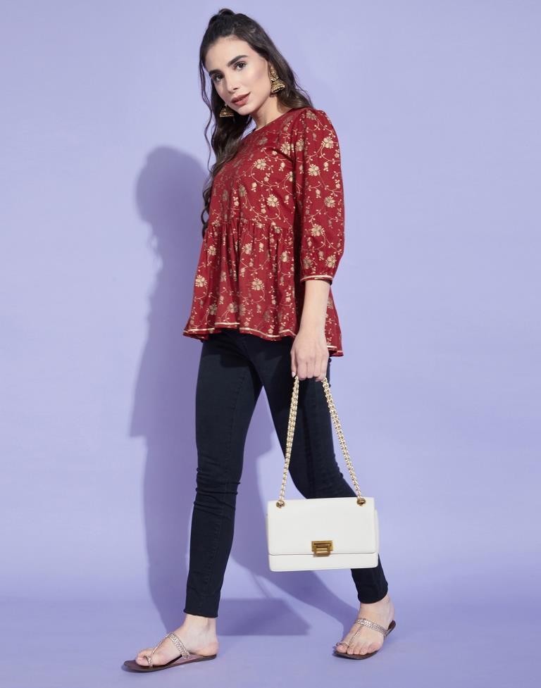 Red Geathered Top