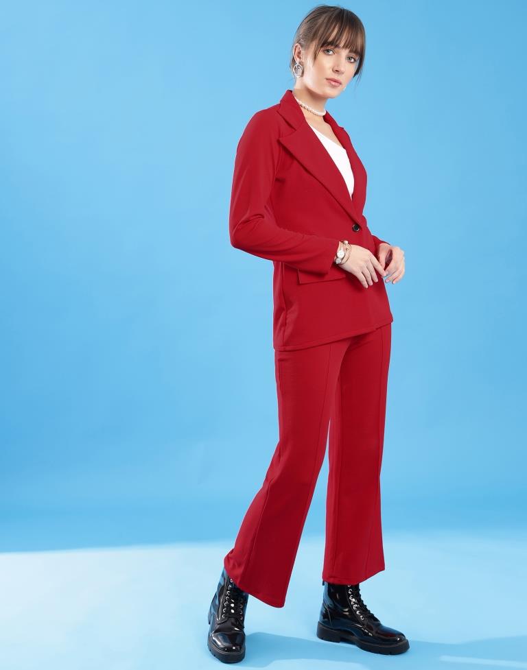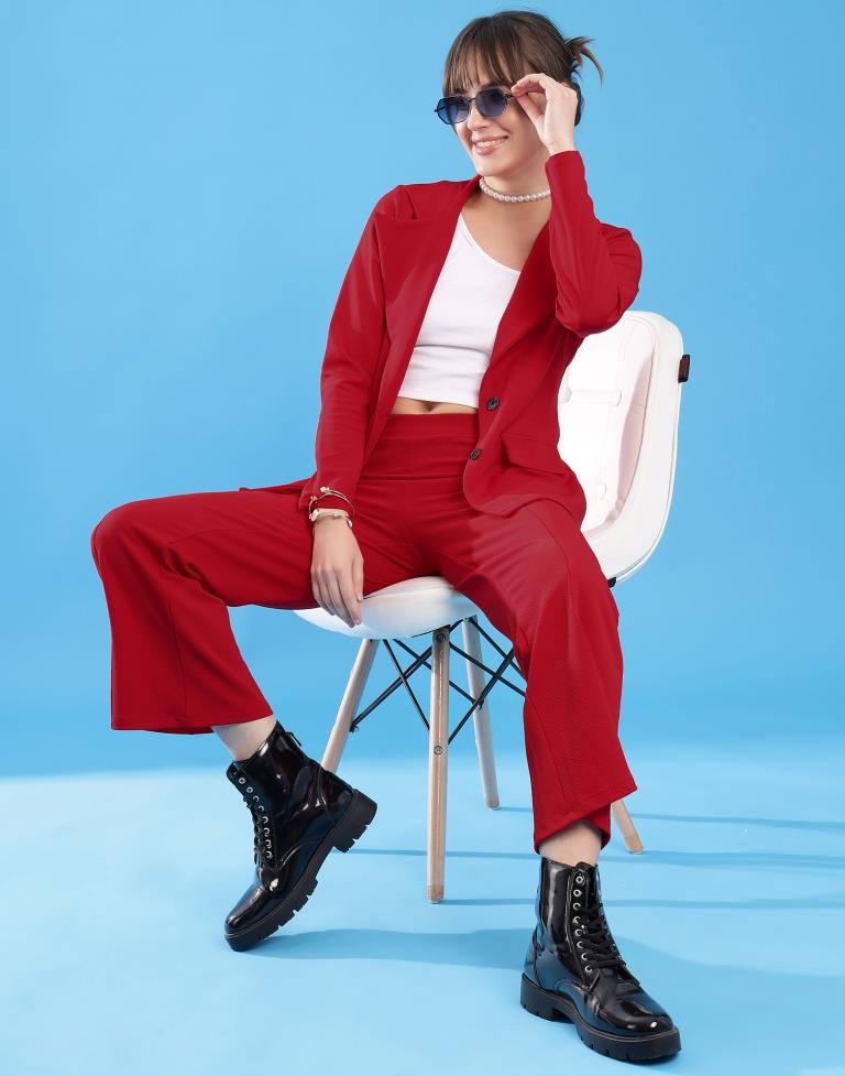 Red Lycra Plain Co-ords Set