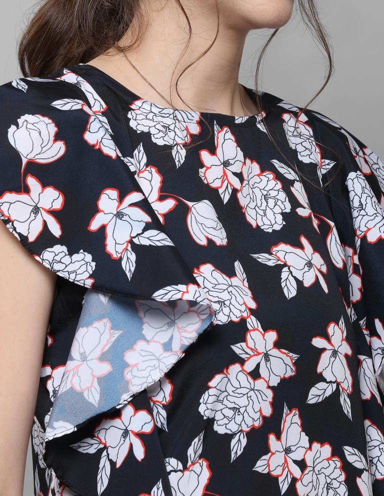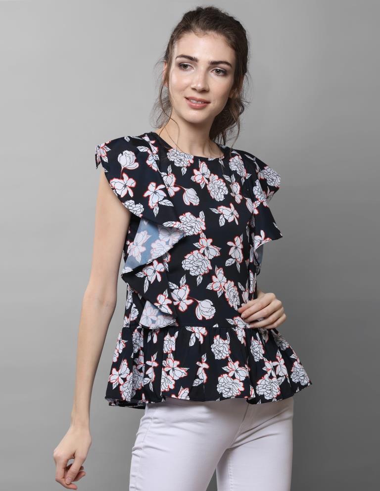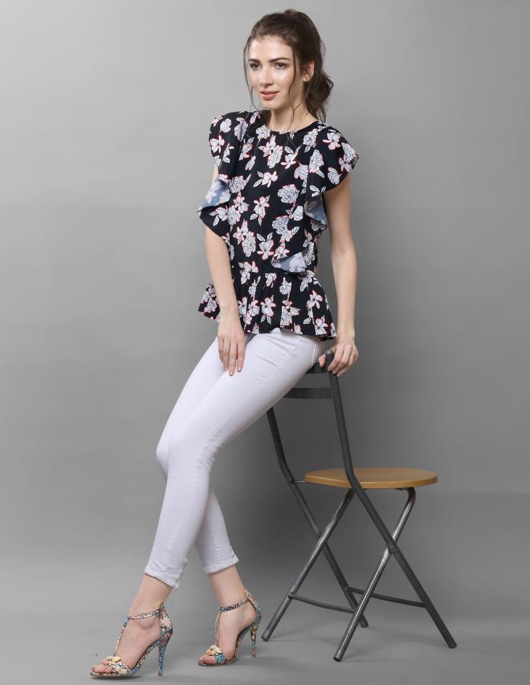 Sparkling Black Coloured Printed Crepe Tops