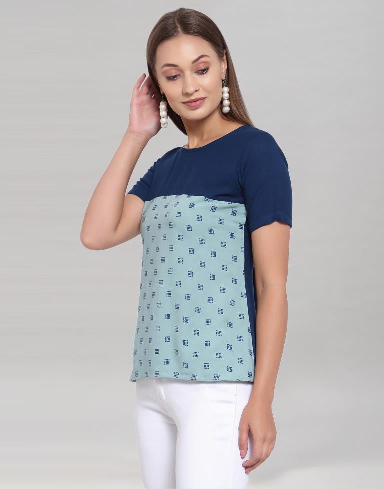 Teal Coloured Rayon Table Print Top