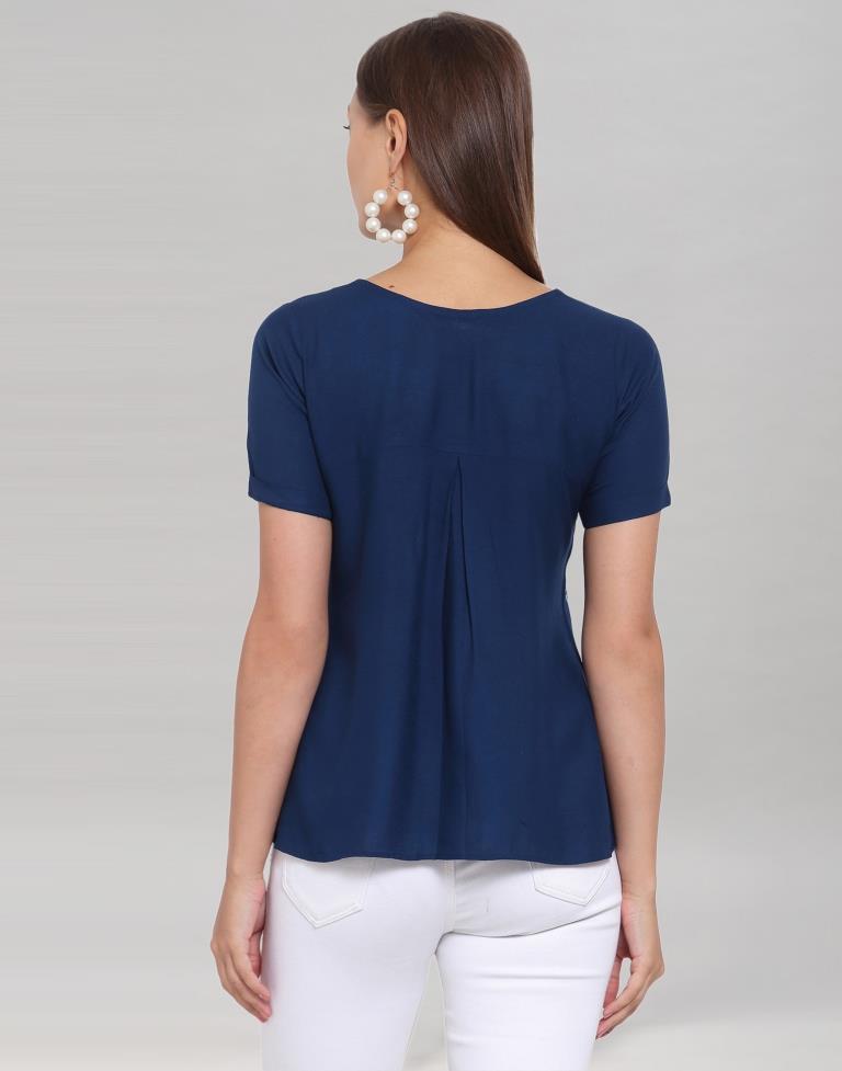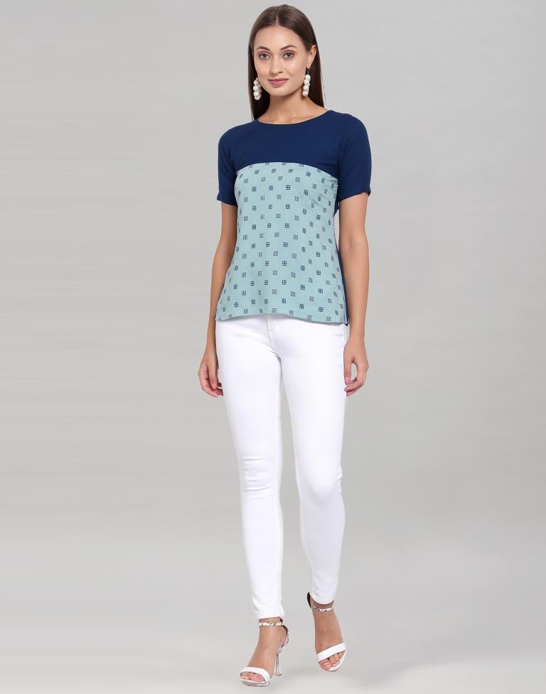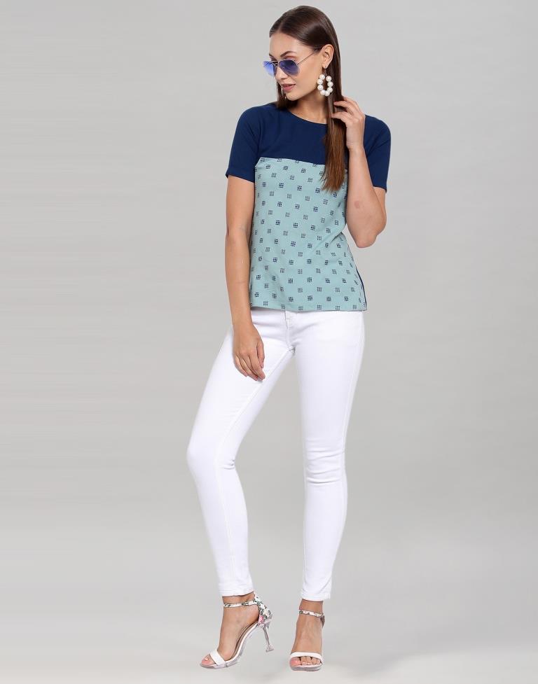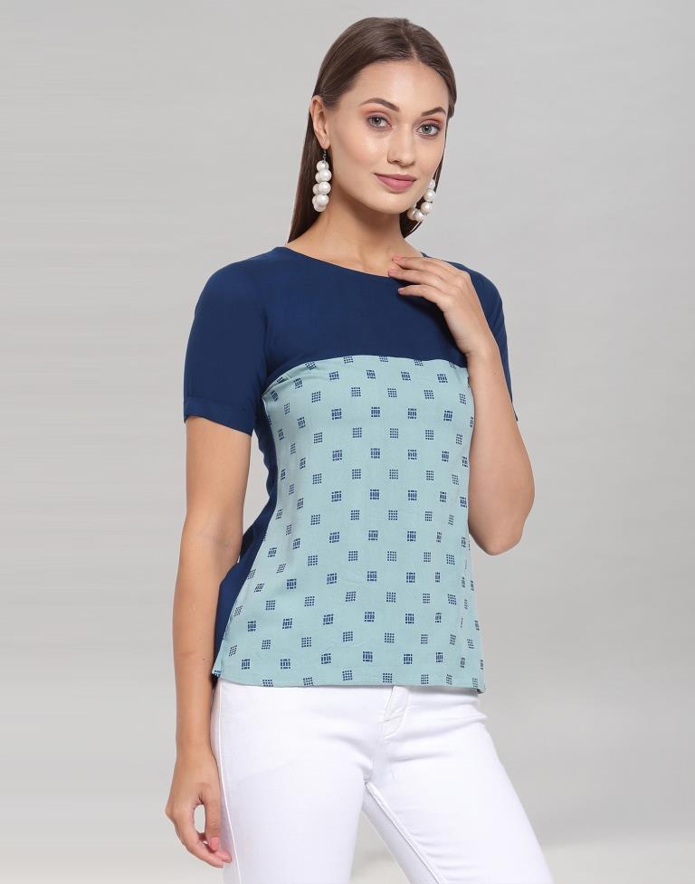 Blue Coloured Crepe Table Printed Top