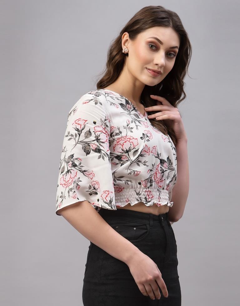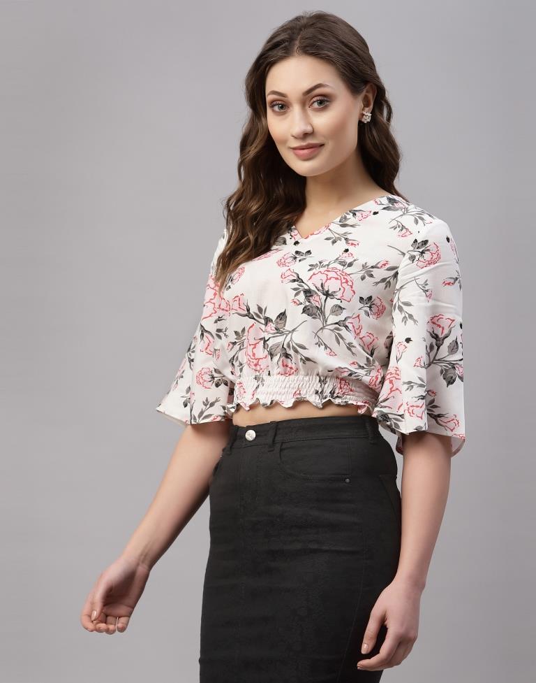 White Crop Smocked Top