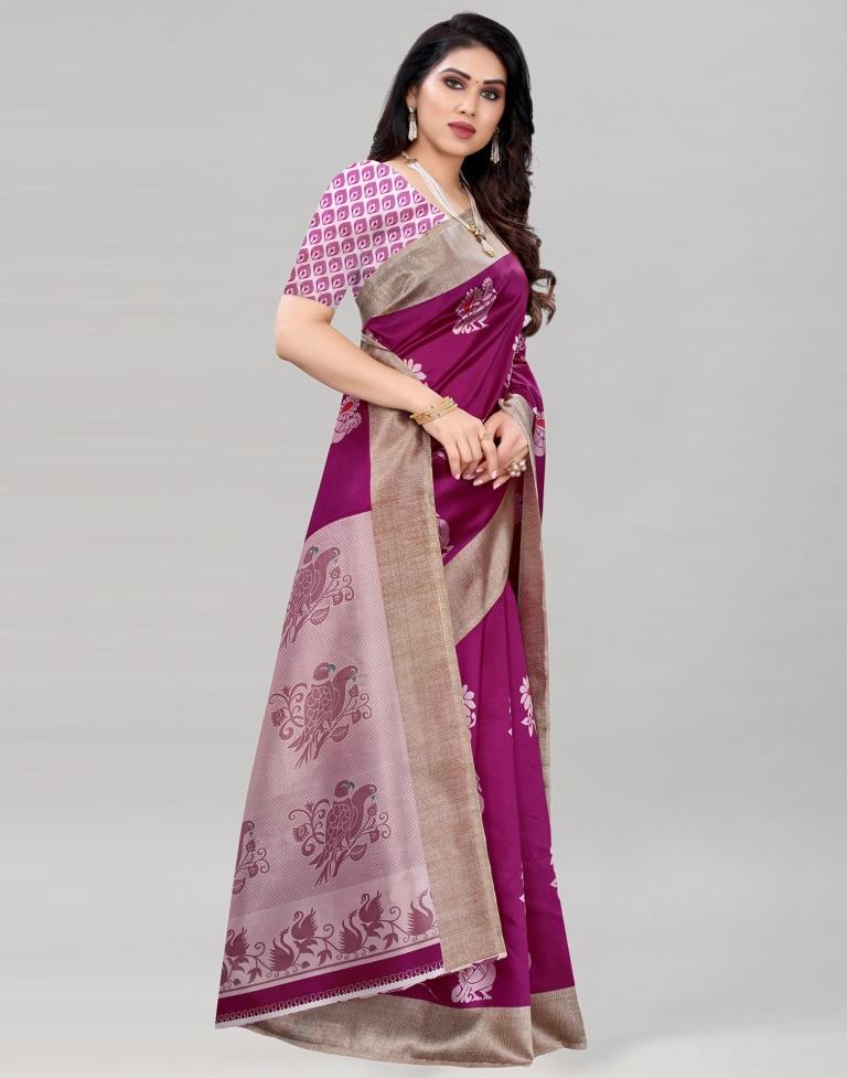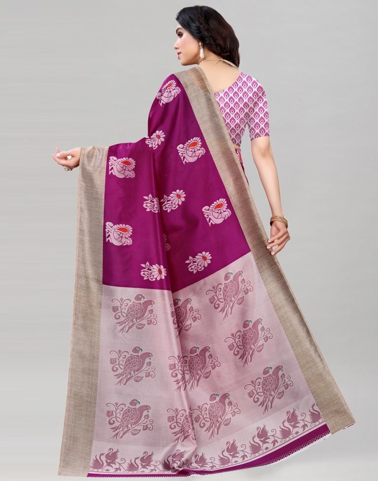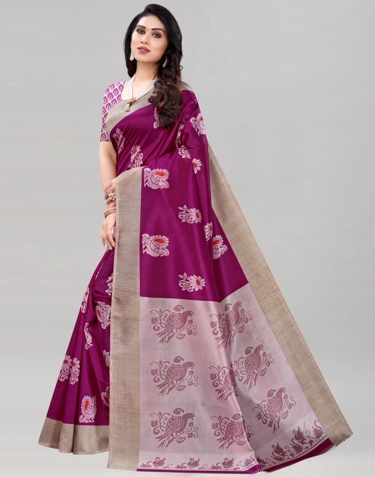 Wine Silk Printed Saree