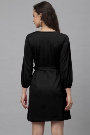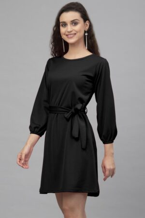 Desirable Black Coloured Knitted Lycra Dress